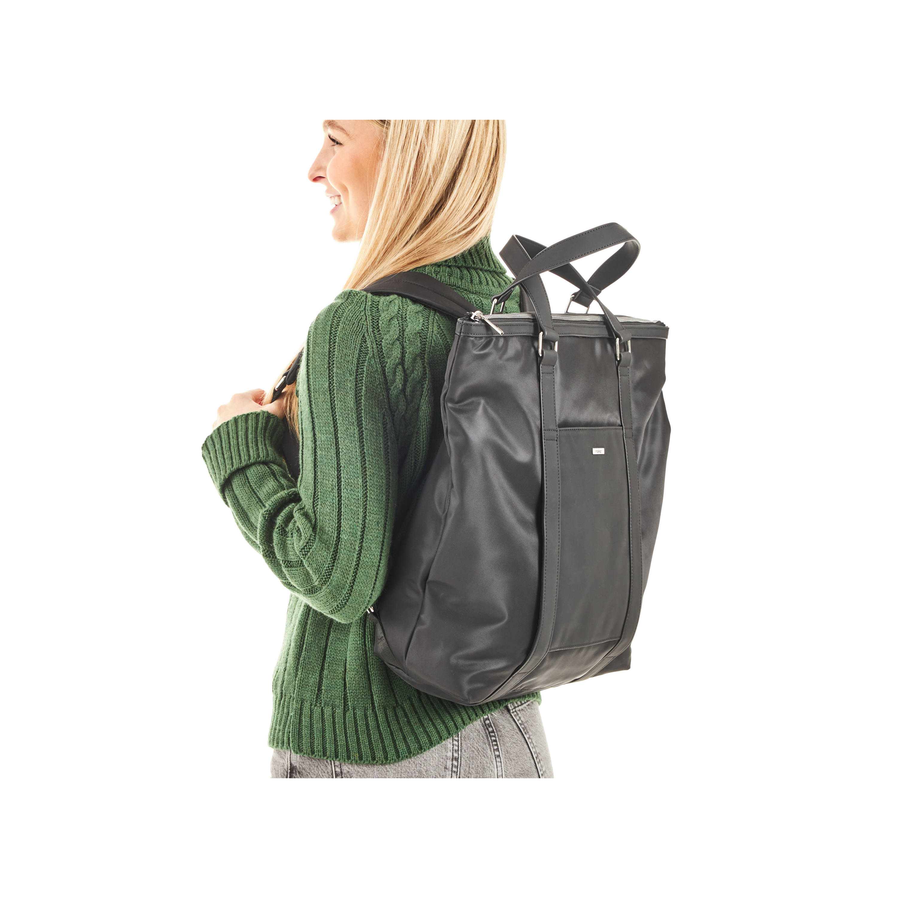 - Laukkua voi käyttää käsilaukkuna sekä reppuna