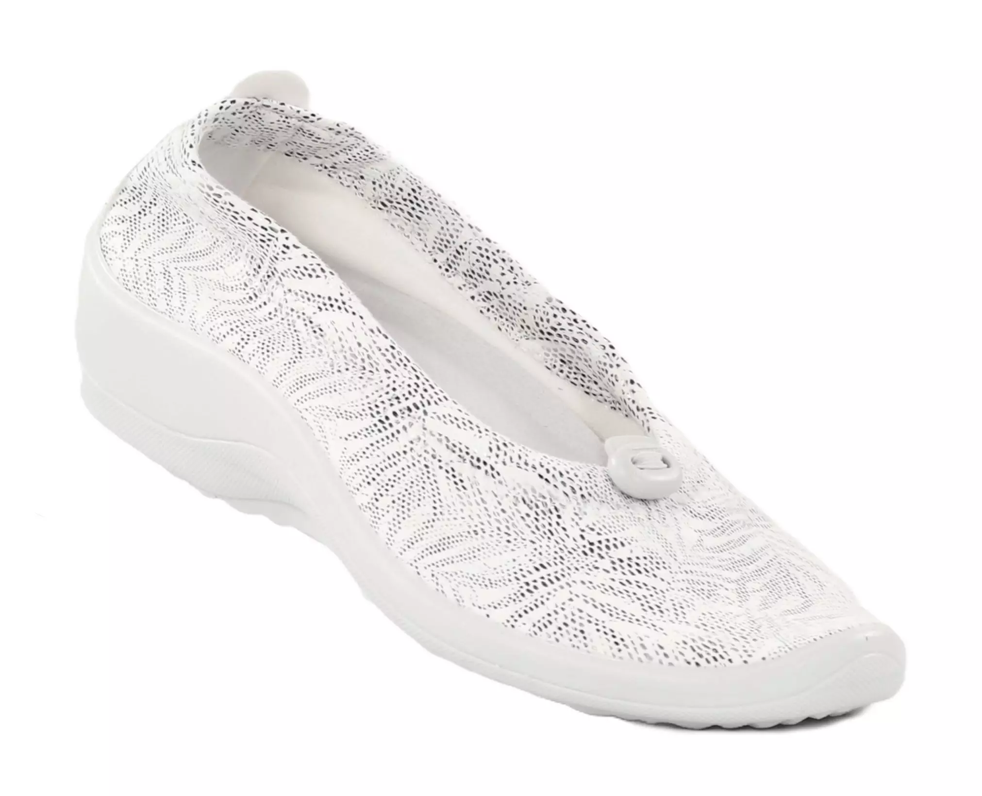 Todella pehmeät, mukavat ja kevyet Arcopedico-ballerinat/kävelykengät, joissa tyylikäs lehtikuosillinen päällinen. Päälliosa on valmistettu elastisesta Lytech-materiaalista, jonka myötä kenkä mukautuu monenlaisille jaloille sopivaksi.