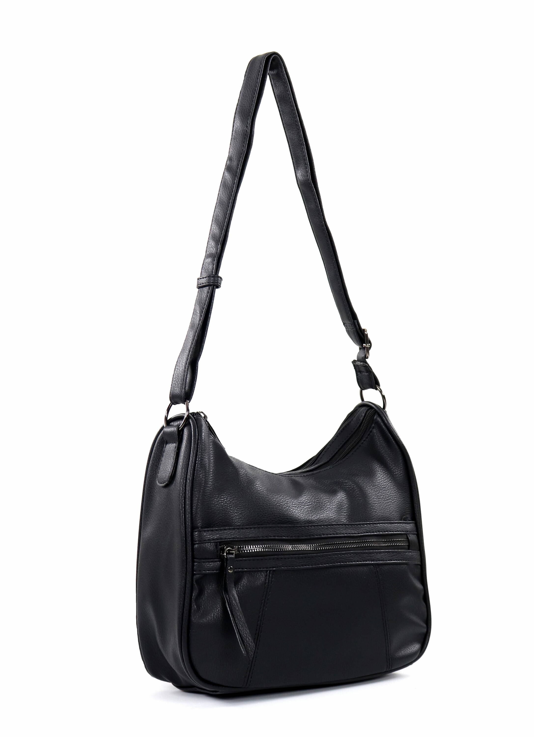 Tyylikäs olkalaukku useilla eri vetoketjutaskuilla.