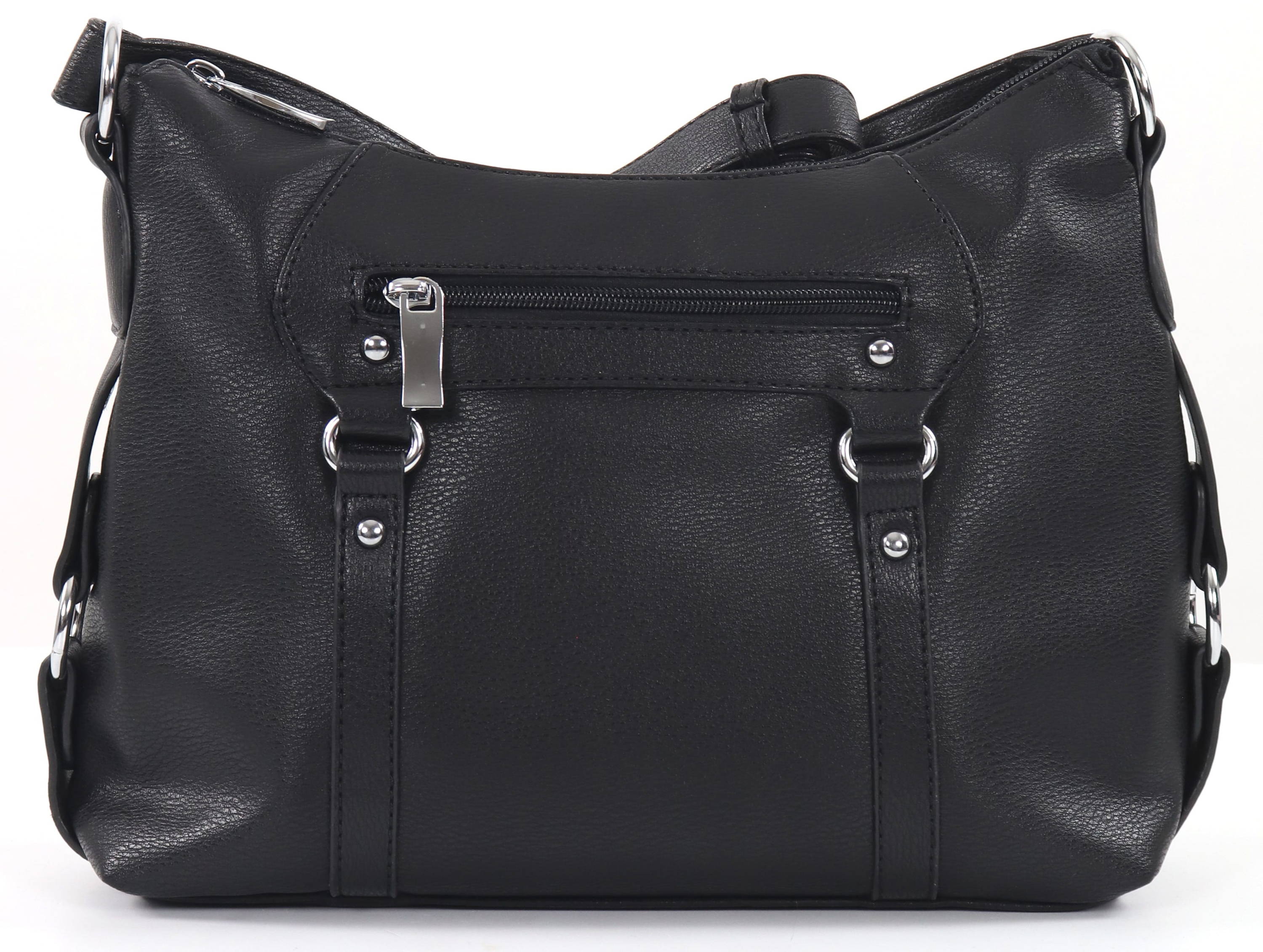 Tyylikäs olkalaukku säädettävällä hihnalla ja näteillä koriste yksityiskohdilla.