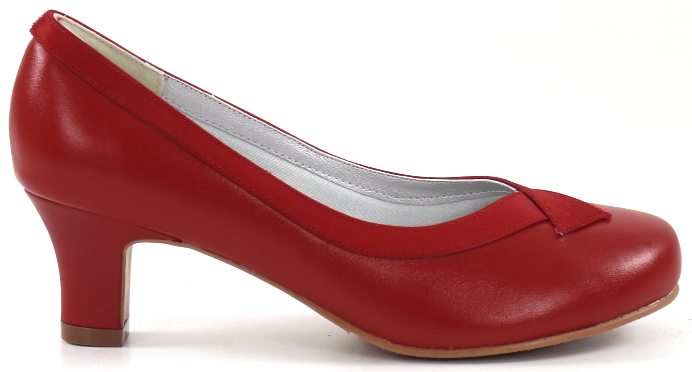 Punaiset avokkaat nahkaa tukevalla kannalla ja laajalla lestillä. Chantanan avokkaat on suunniteltu Suomessa!