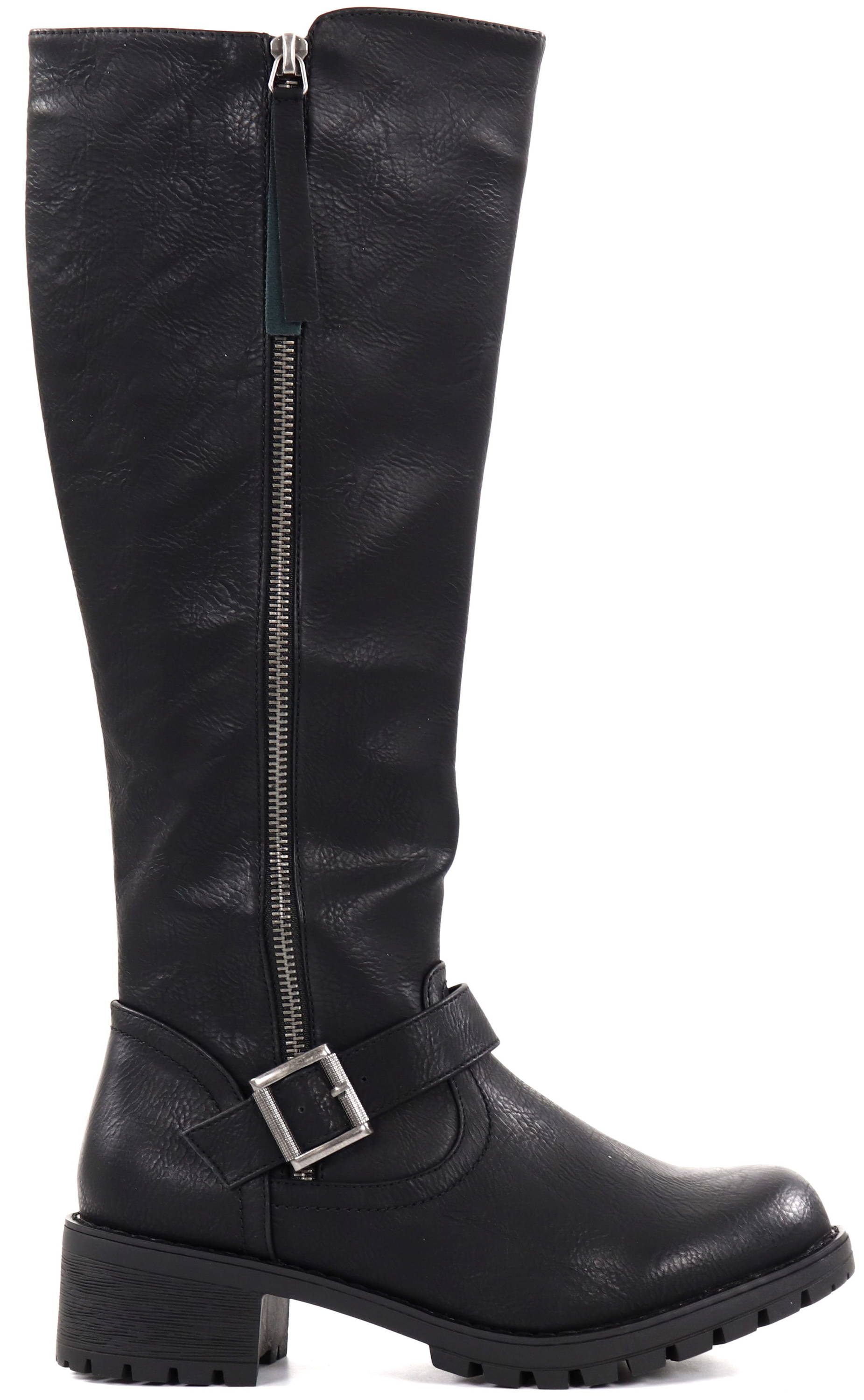 Keinomateriaaliset saappaat koristevetoketjulla.
