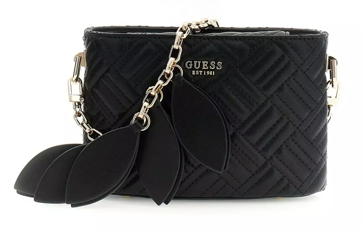 Guess pikkulaukku on täynnä kauniita yksityiskohtia! Tikkikuvioitu materiaali ja ketjuhihnan upeat sulkakuvioinnit viimeistelevät tyylin.