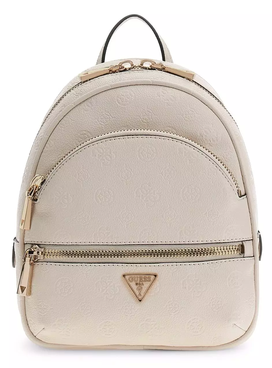 Trendikäs ja kompaktin kokoinen reppu kullanvärisillä yksityiskohdilla.