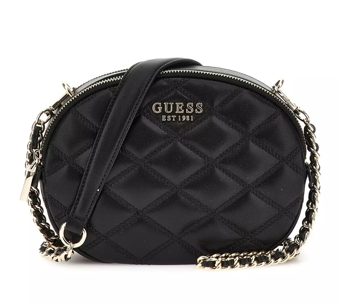 Tikkikuvioitu kaunis pikkulaukku pitkällä olkahihnalla.