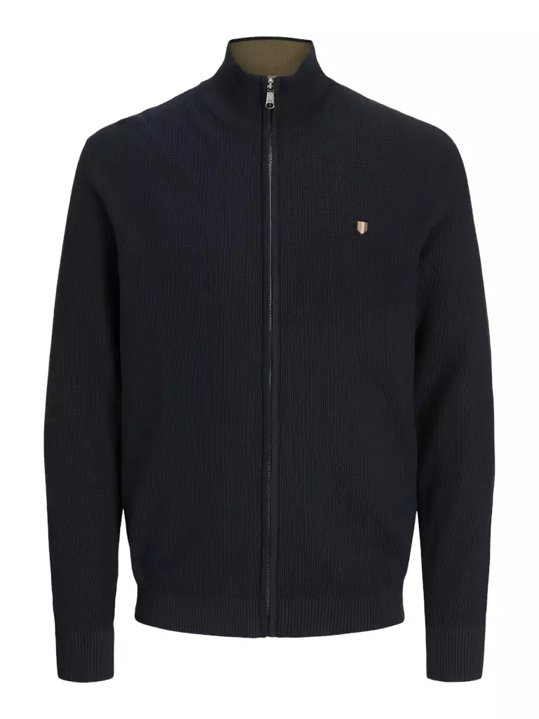 Puuvillainen neuletakki vetoketjukiinnityksellä.