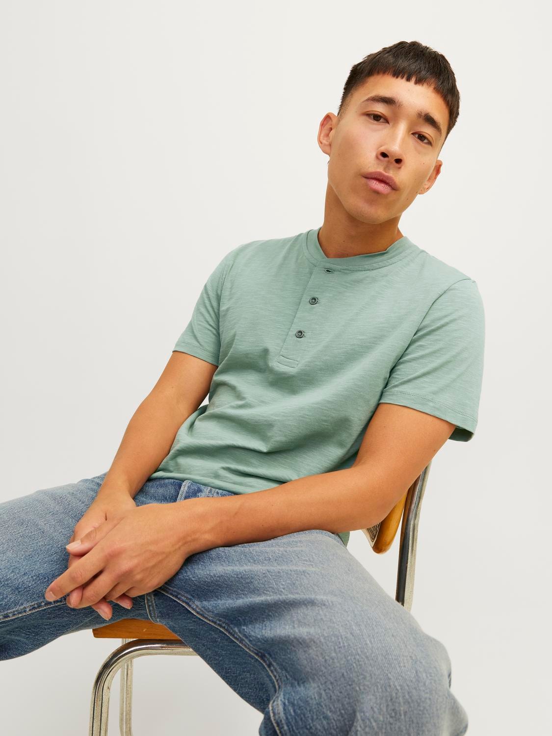 Miesten vaarinpaitamallinen t-paita, joka on valmistettu hengittävästä puuvillasta.