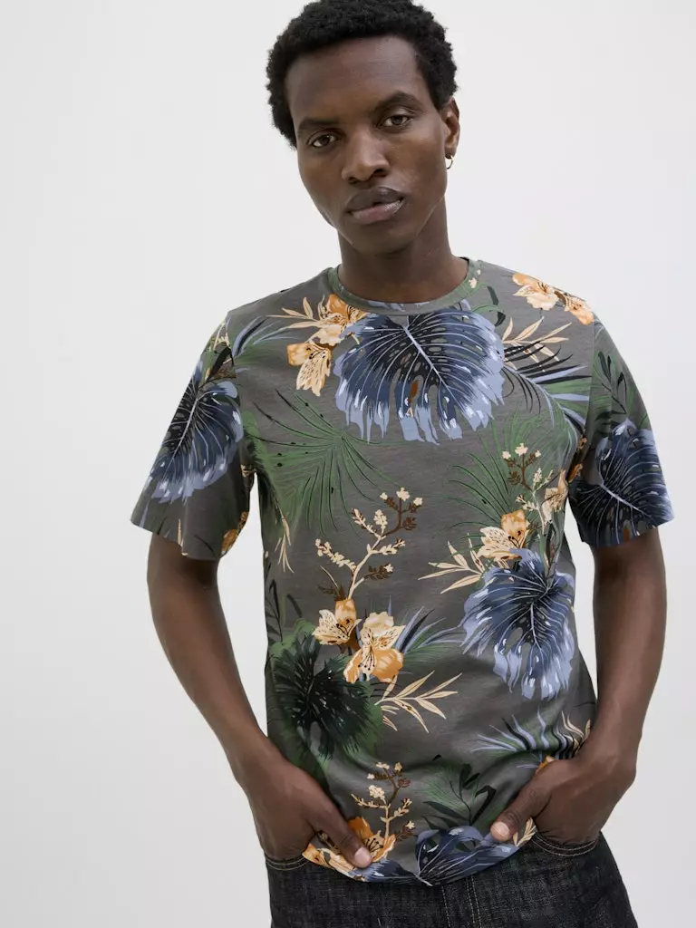 Jack&Jones miesten T-Paita Hawaii harmaa/kuviollinen