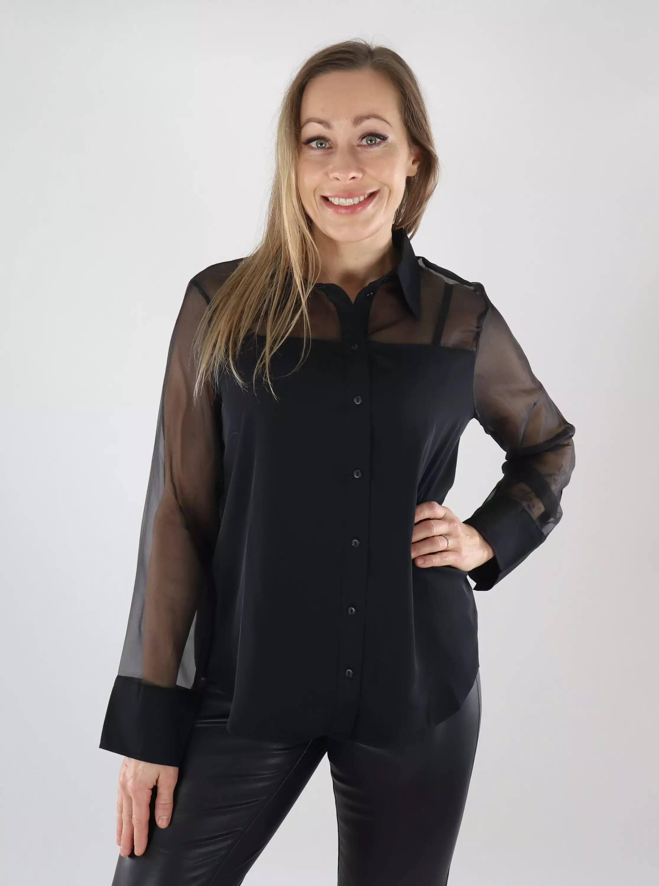 Rento ja trendikäs JDY-kauluspaita, jossa on väljä istuvuus ja läpikuultavat yläosa ja hihat. Helppo yhdistää niin arki- kuin juhlalookkeihin!