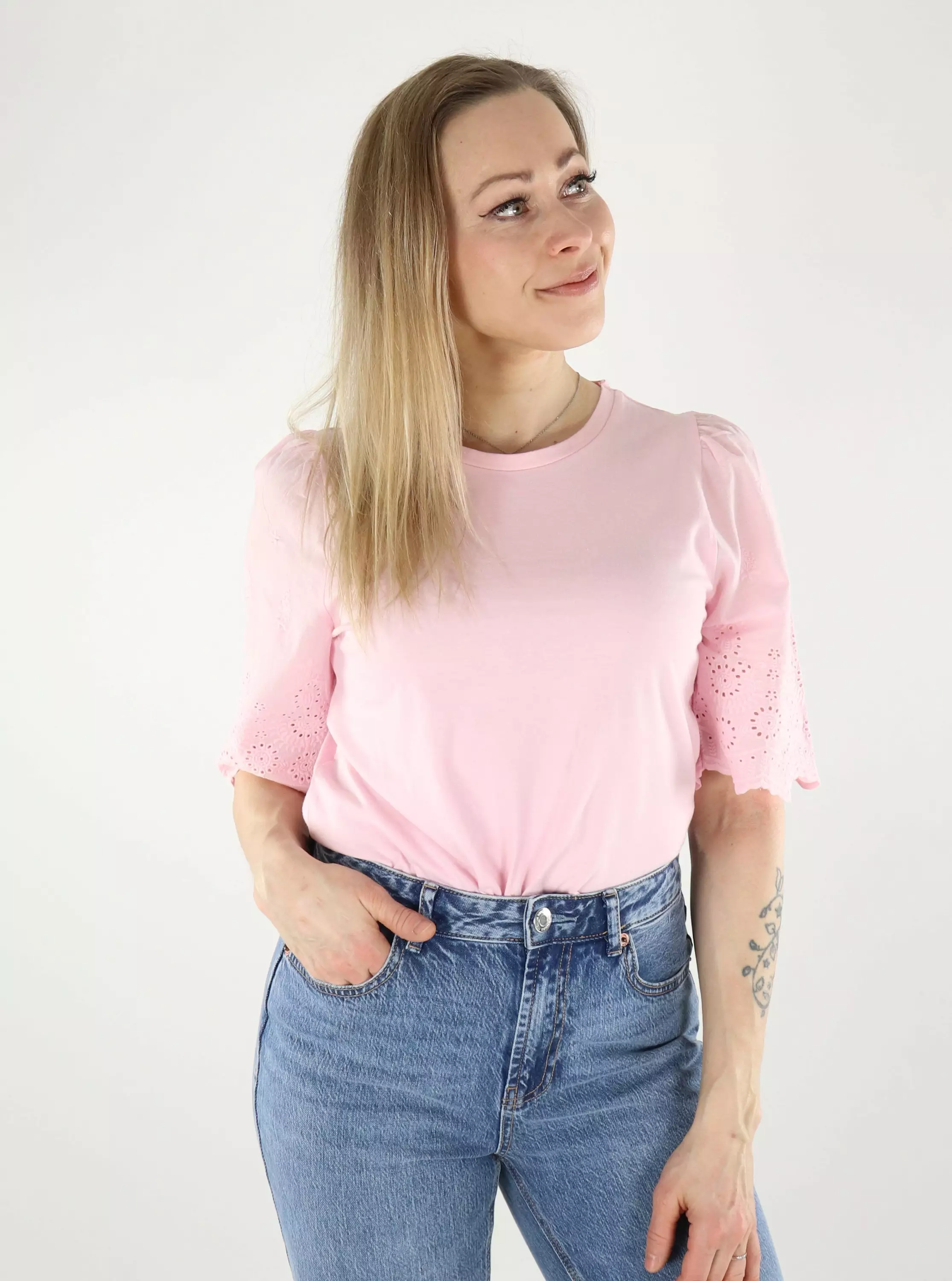 JDY naisten pitsihihainen t-paita JDYLAIR Life New pink lady