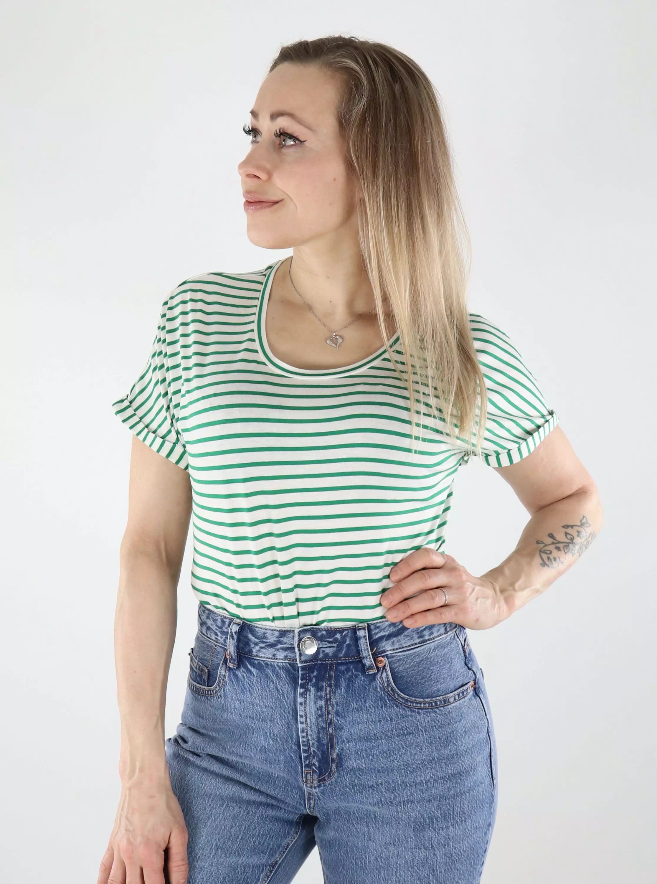 JDY naisten raidallinen t-paita Sissy O-Neck valkoinen/vihreä