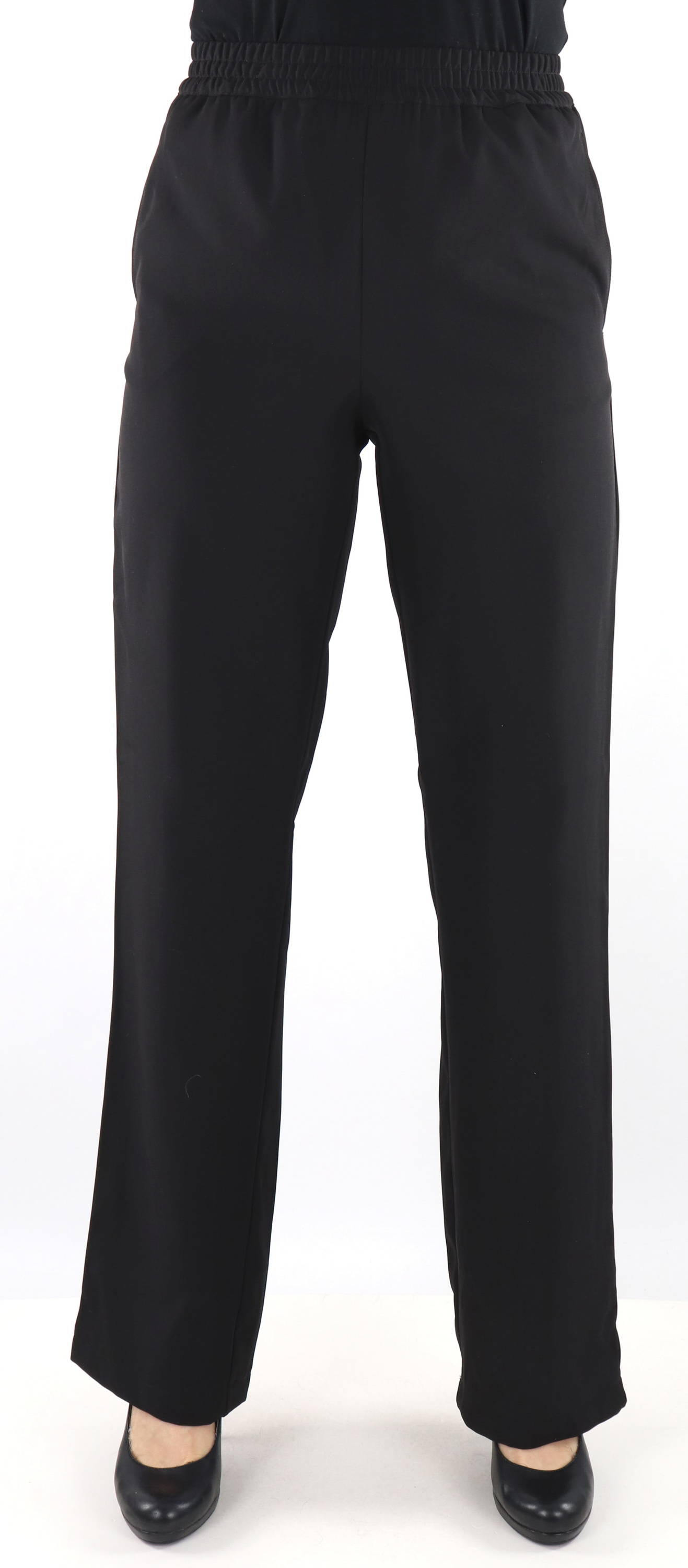 Leveät housut joustavalla vyötärökuminauhalla.