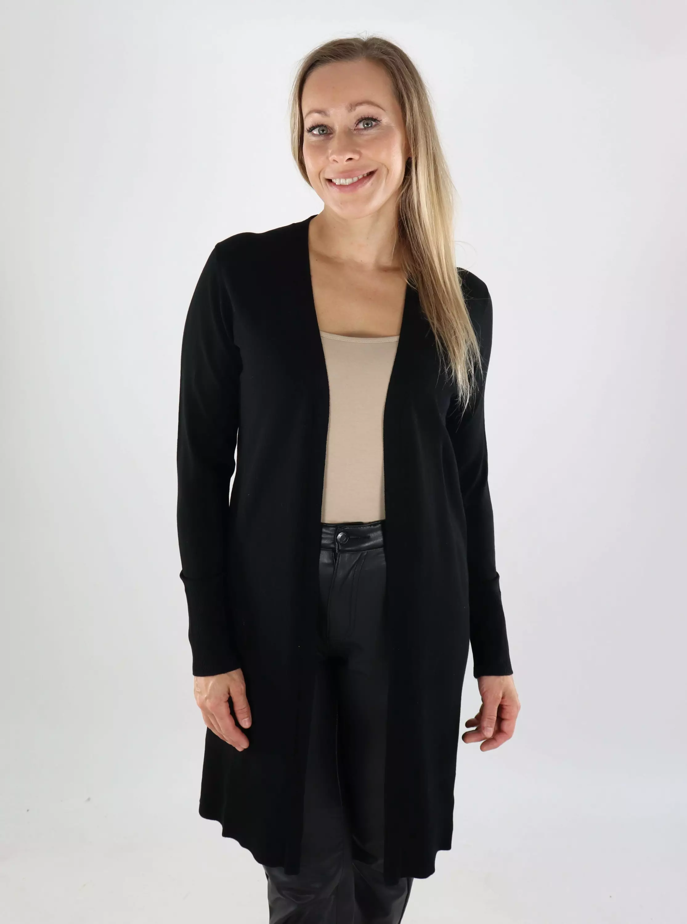 Rento ja ajaton neuletakki, jossa yhdistyvät käytännöllisyys ja tyylikkyys! Avonainen malli ja kevyt viskoosisekoite tekevät tästä täydellisen arjen luottovaatteen.