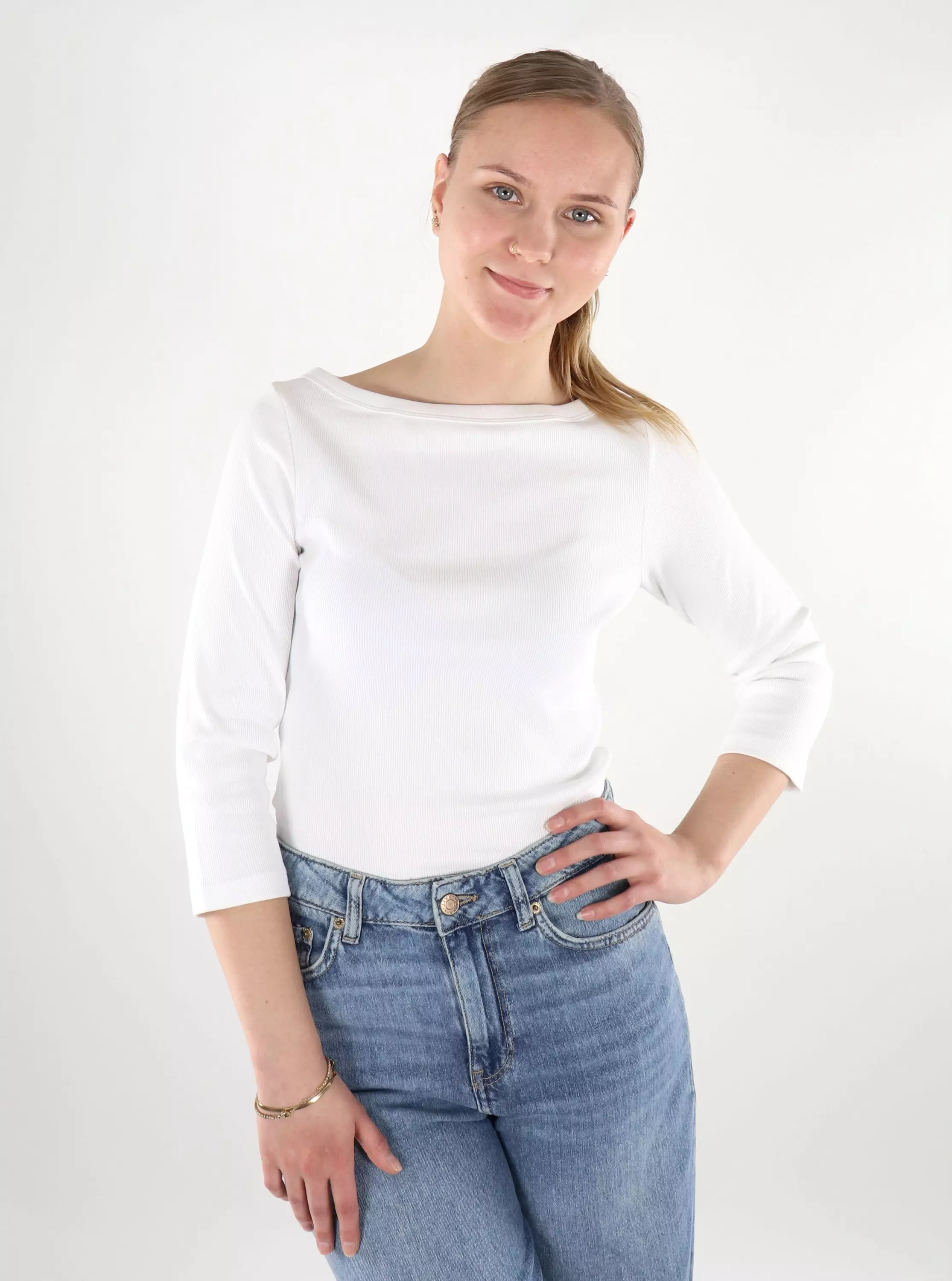 JJXX naisten ribbipaita Fifi 3/4 Boatneck valkoinen