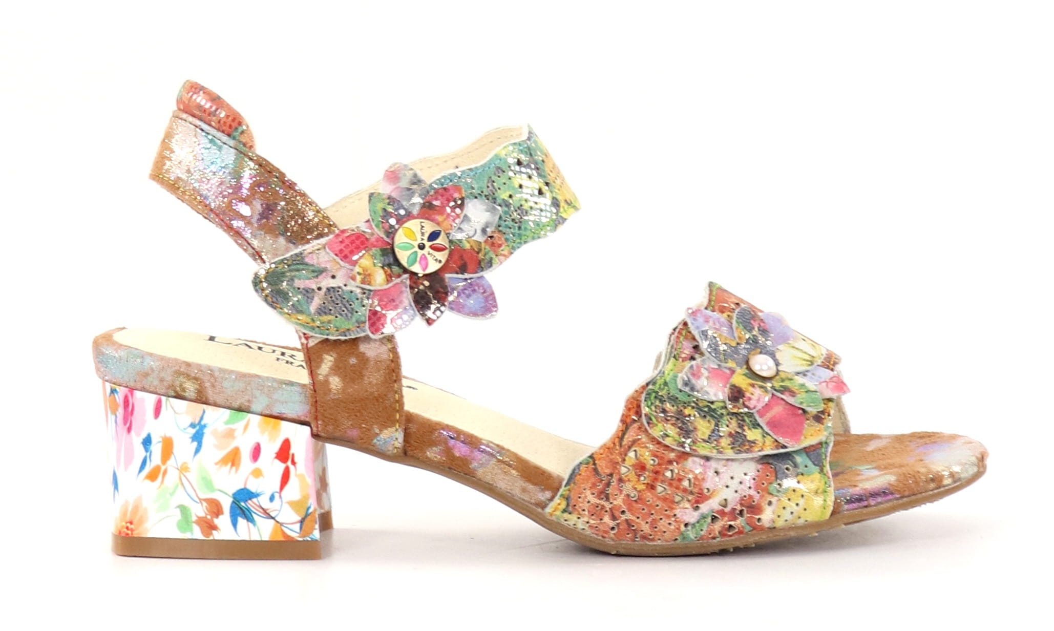 Kauniit kukkayksityiskohdilla varustetut nahkasandaalit.