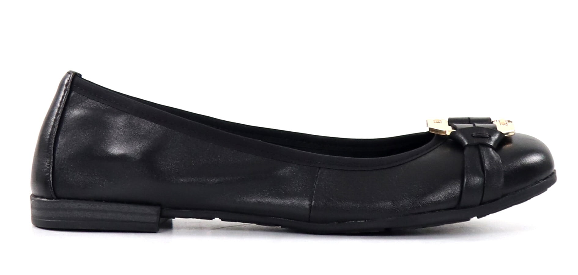 Aitonahkaiset ballerinat, joissa päällä kultaisen sävyinen solki.