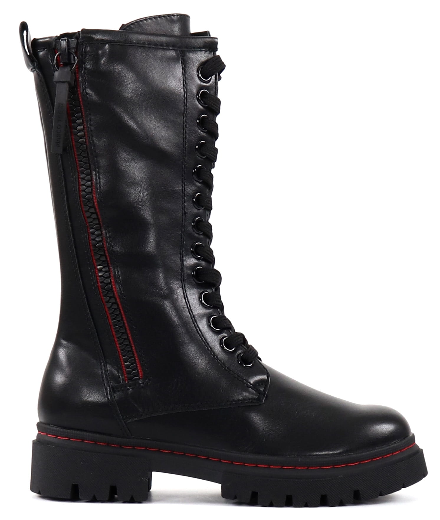 Mustat saapikkaat punaisilla yksityiskohdilla.