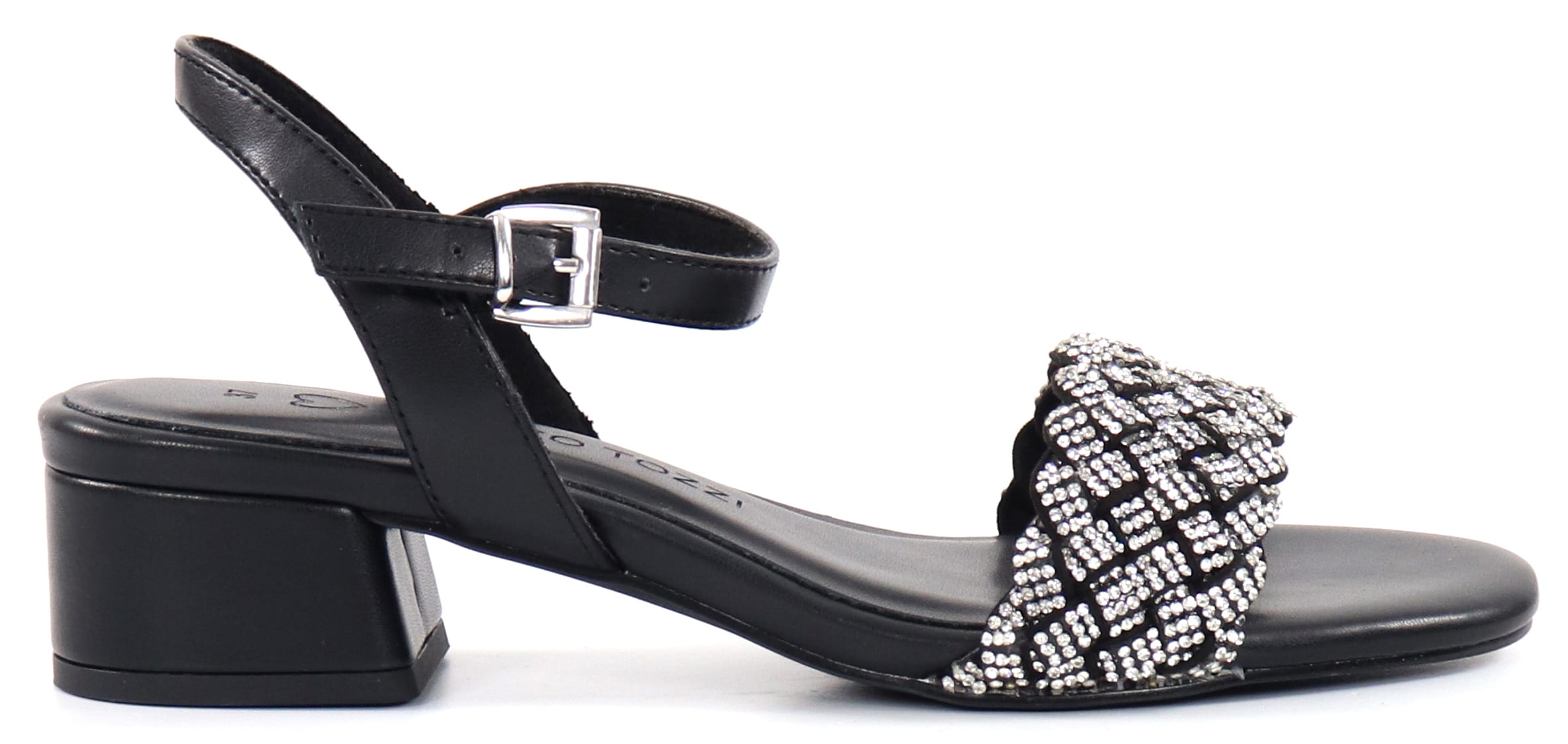 Täydennä kesän asuasi tyylikkäillä Marco Tozzin sandaaleilla. Matalakorkoiset naisten sandaalit nilkkaremmillä ja strassikivillä.