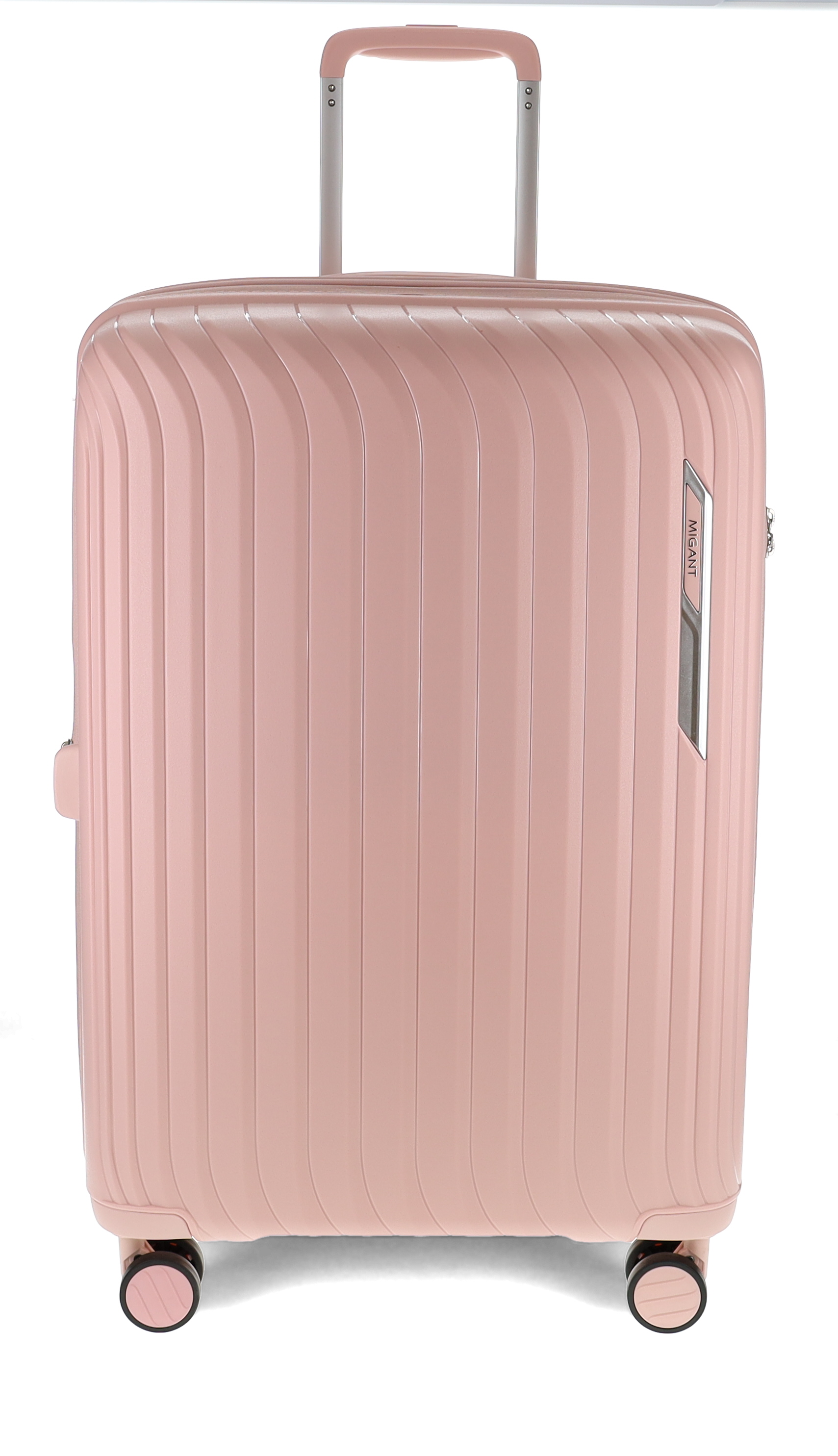Migantin laadukas, polypropyleenista valmistettu lentolaukku, joka on kevyt, neljän tuplapyörän ansiosta käytännöllinen ja helposti rullaava matkakumppani.