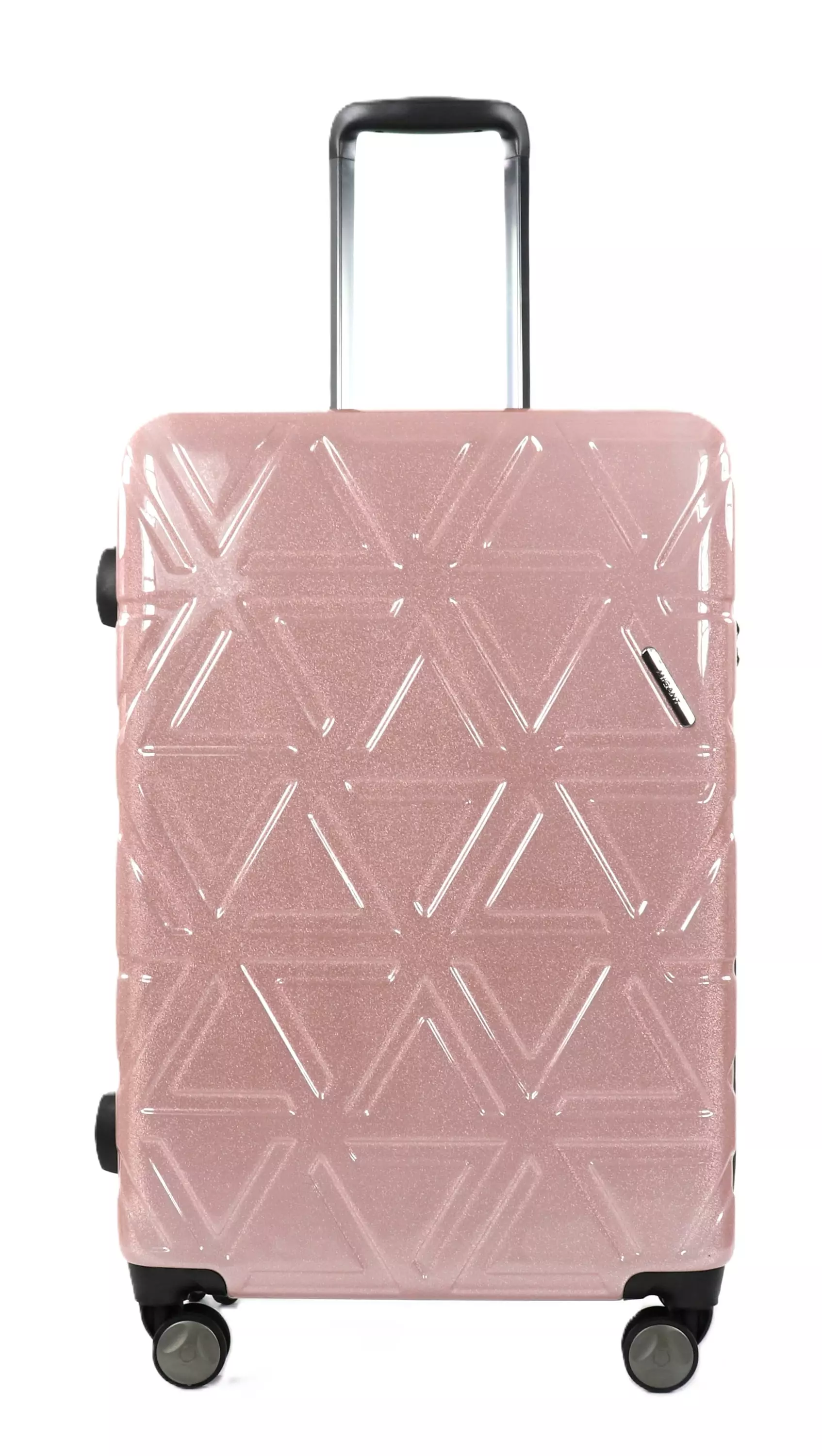 - Kevyt matkalaukku kestävää polypropeenia, jossa glitteriä