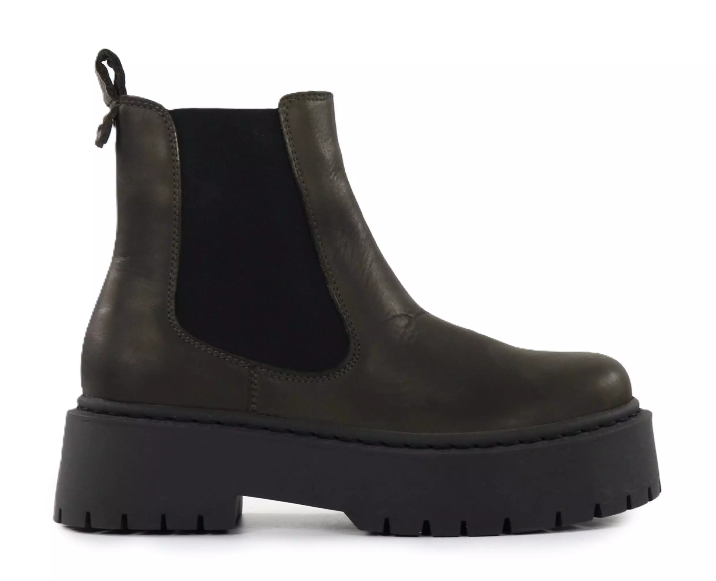 Paksupohjaiset Migant-nilkkurit, jotka on valmistettu aidosta nahasta. Armeijanvihreä sävy tuo kenkiin trendikästä ilmettä!