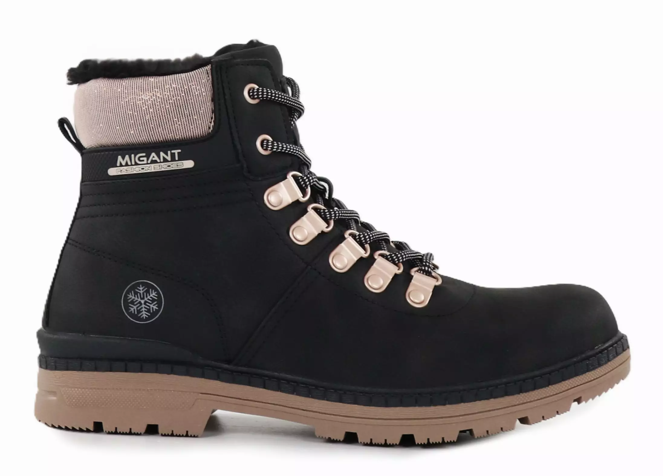 Lämpimät nilkkurit pehmeällä keinokarvavuorella ja irrotettavalla sisäpohjallisella. Kauniit ruusukultaiset yksityiskohdat viimeistelevät kokonaisuuden!