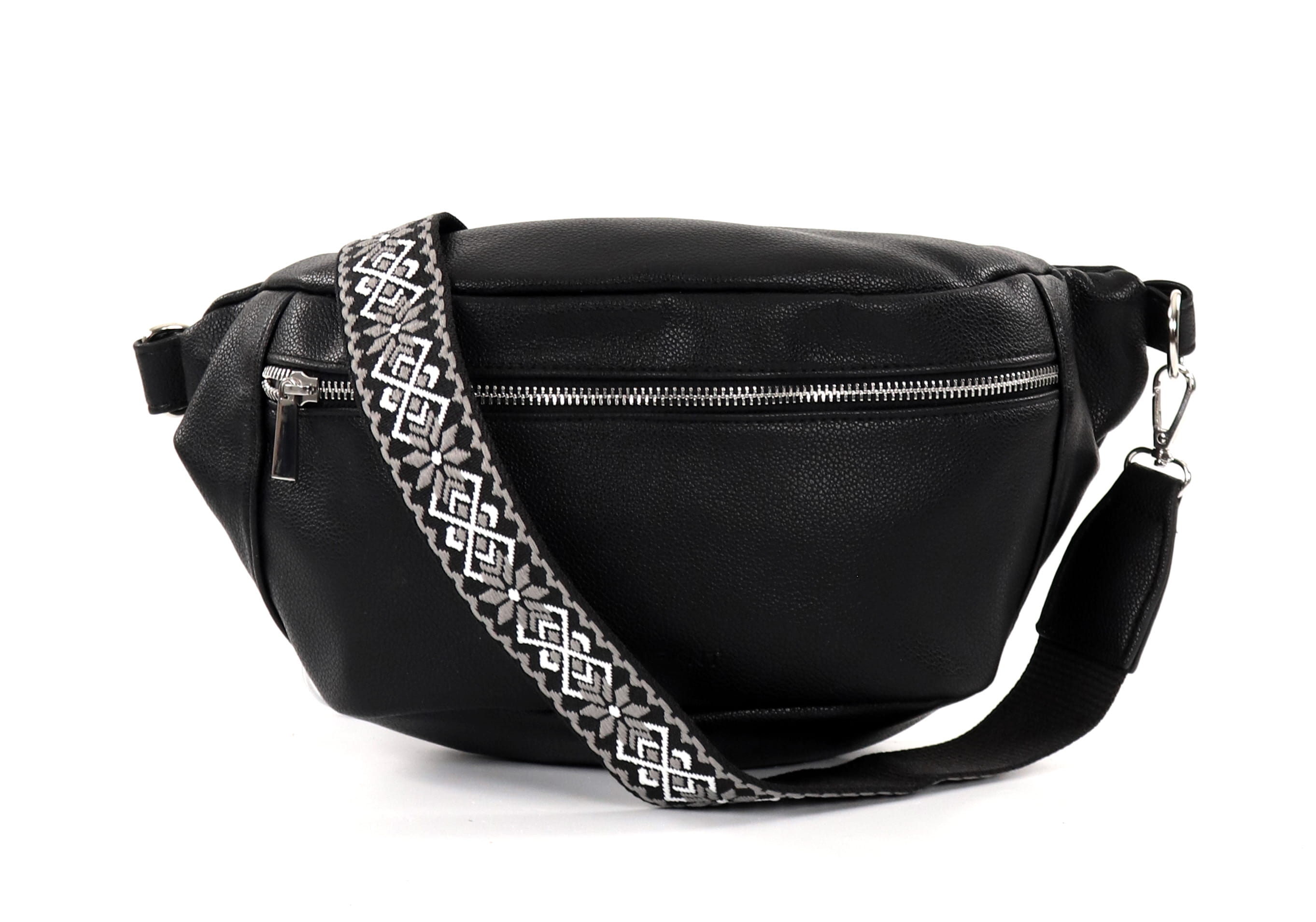Migantin tyylikäs vyölaukku, jossa leveä kuvioitu hihna. Voidaan käyttää niin vyö- kuin olkalaukkuna!