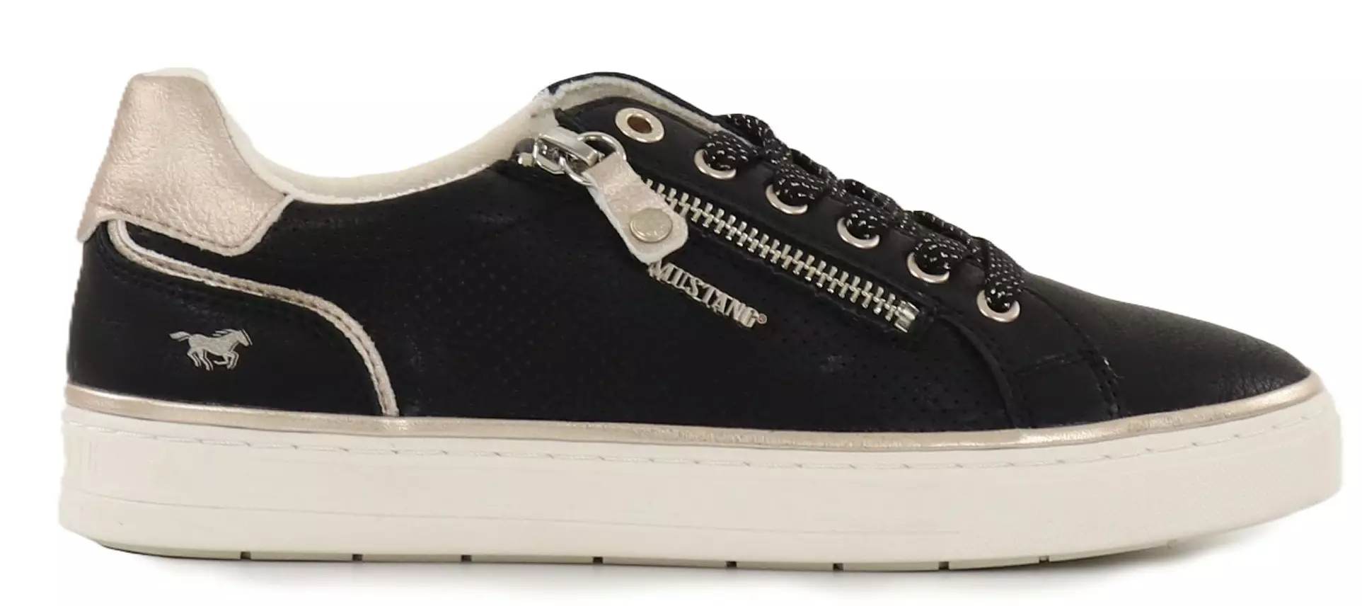 Matalapohjaiset Mustang tennarit kumipohjalla ja kullanvärisillä yksityiskohdilla.