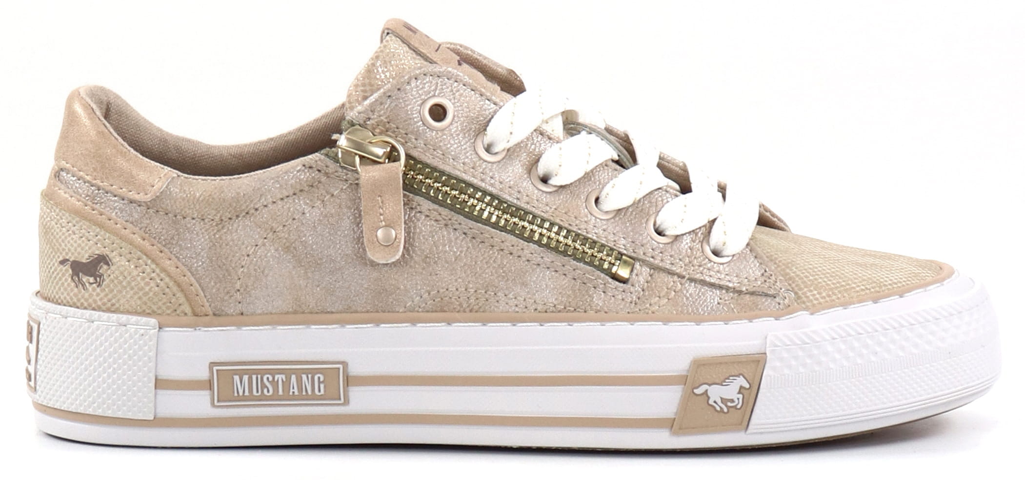 Tennarit kultaisilla yksityiskohdilla. Edessä nauhoitus ja sisäsyrjällä vetoketju.