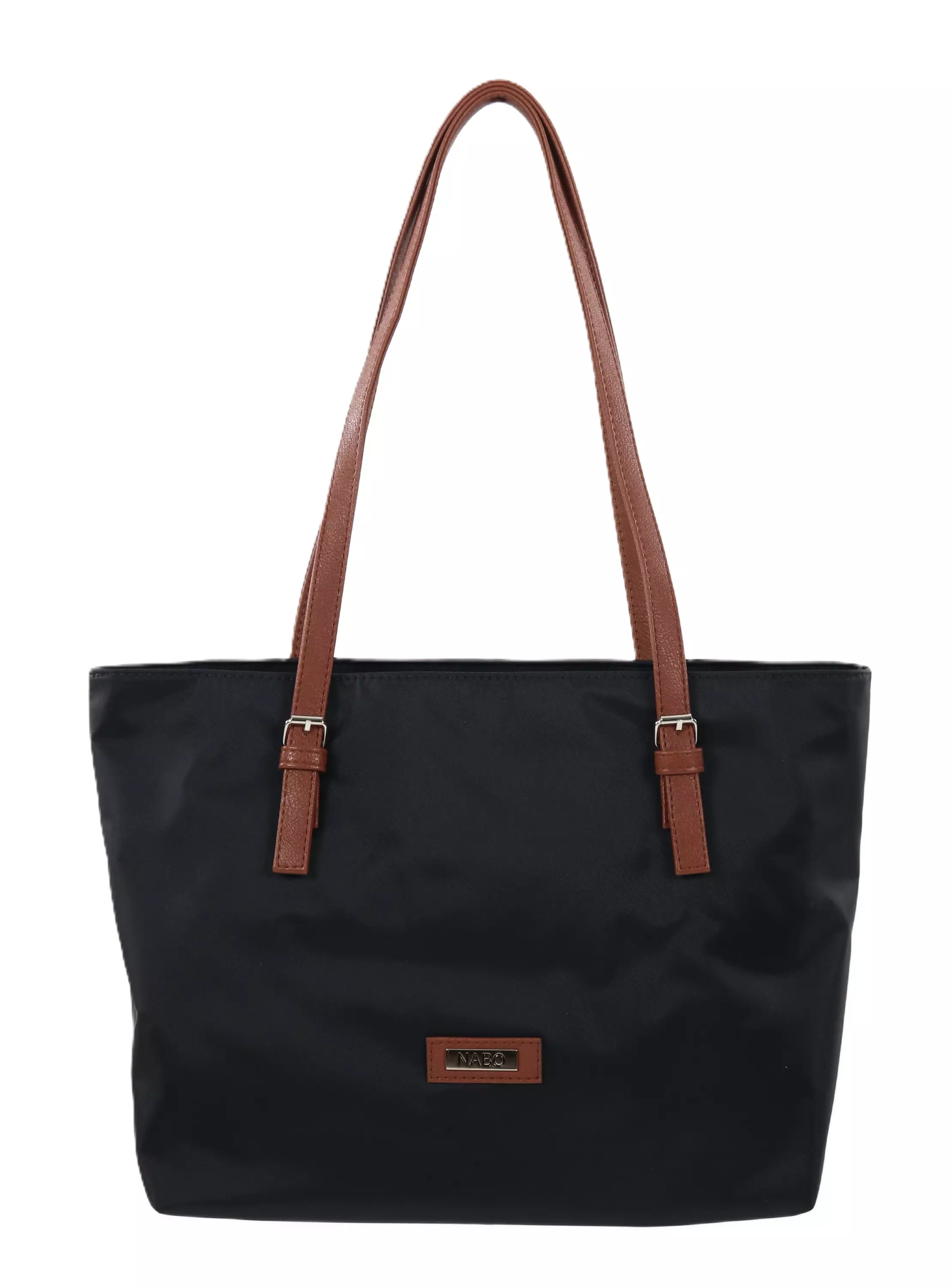 Nabon musta laukku, joka on käytännöllinen valinta arkeen! Konjakinruskeat yksityiskohdat tuovat siihen tyylikästä ilmettä. Laukussa on tilava sisätila, jossa tavarat pysyvät helposti järjestyksessä.