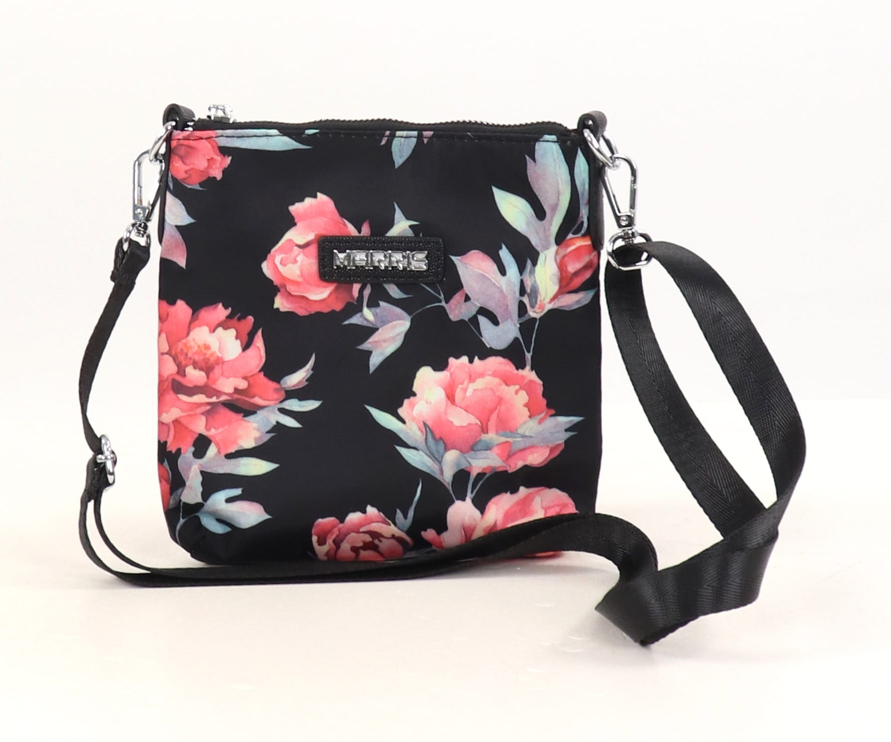 Kankainen kuvioitu laukku, jossa vetoketjusulku ja irroitettava, säädettävä olkahihna