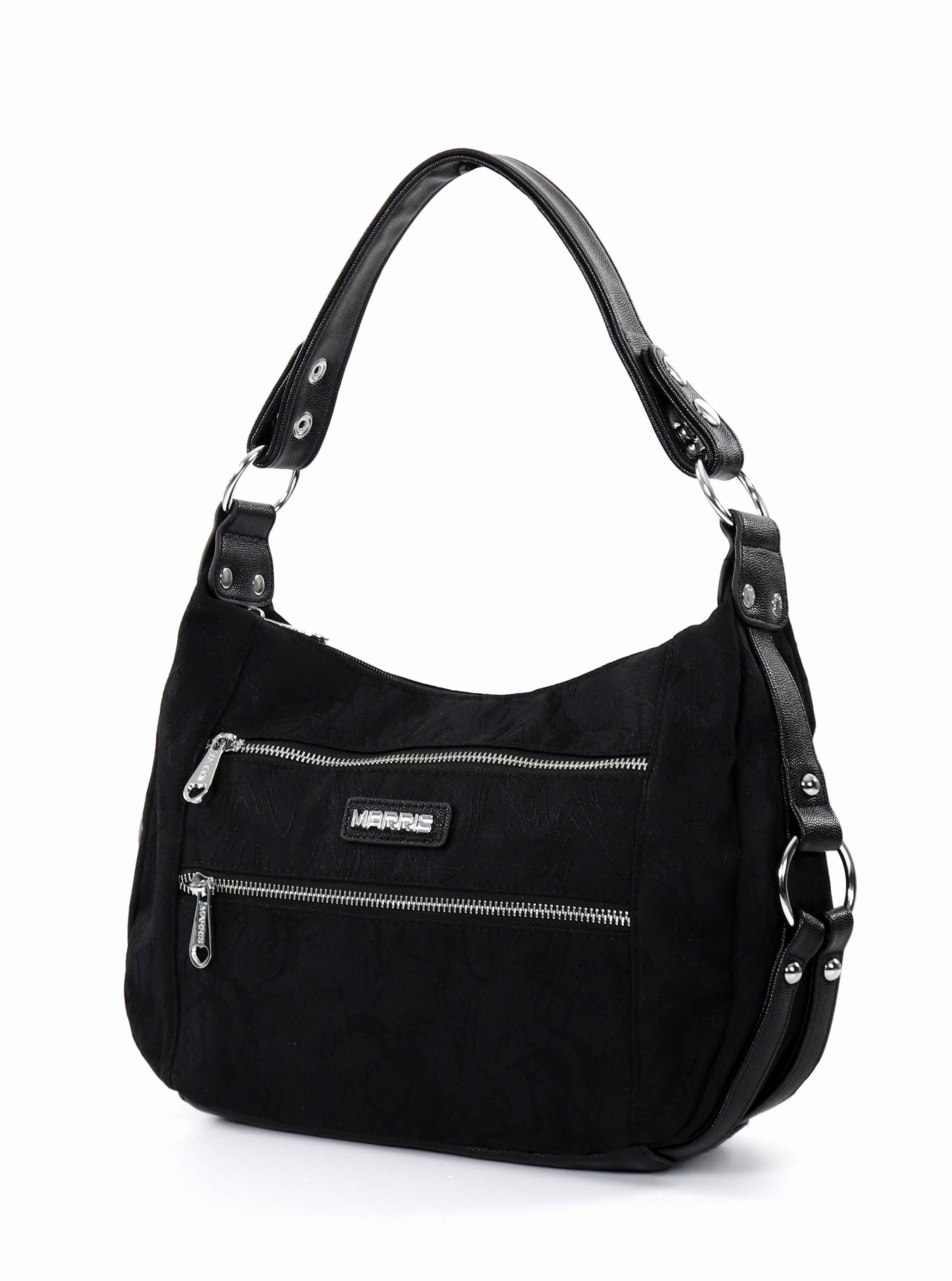 Kankainen laukku useilla eri taskuilla ja vaihdettavalla hihnalla.