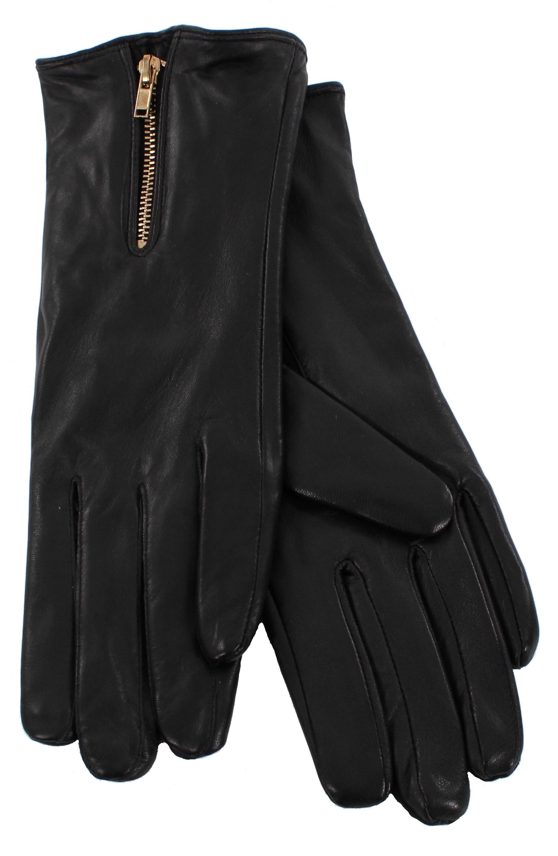 Naisten mustat nahkakäsineet 844 koristevetoketjuilla