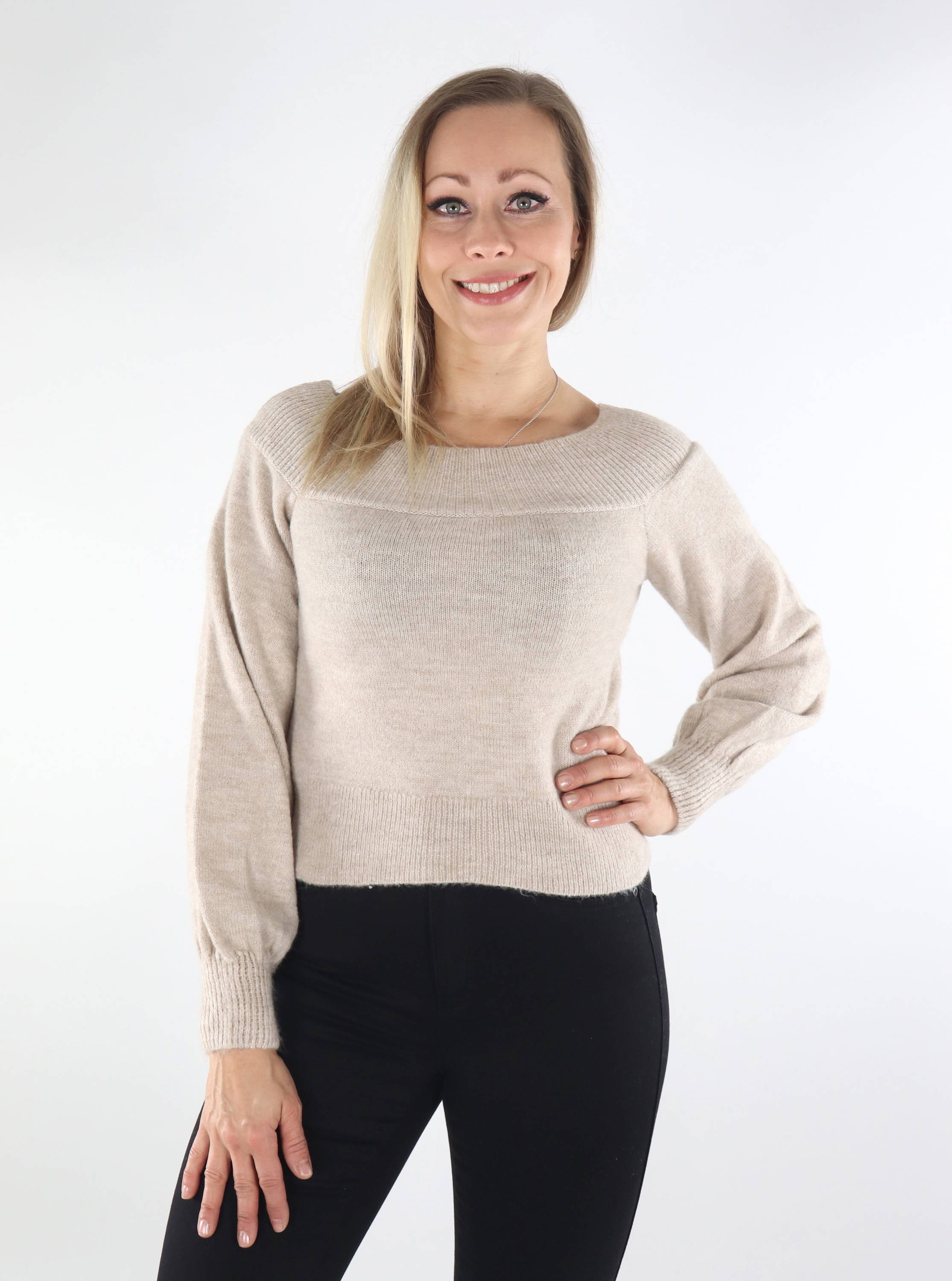 Cropattu off shoulder-neule, jossa tyylikkäät löysät hihat.