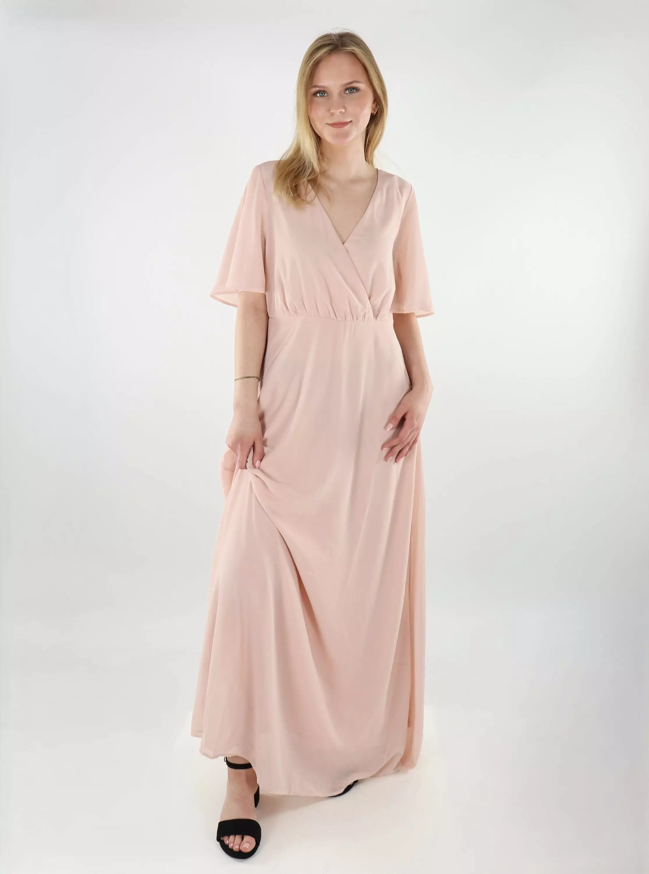 Kauniisti laskeutuva maximittainen mekko Onlylta. Kietaisumallinen yläosa ja V-pääntie korostavat dekolteeta kauniisti. Täydellinen valinta jokaisiin juhliin!