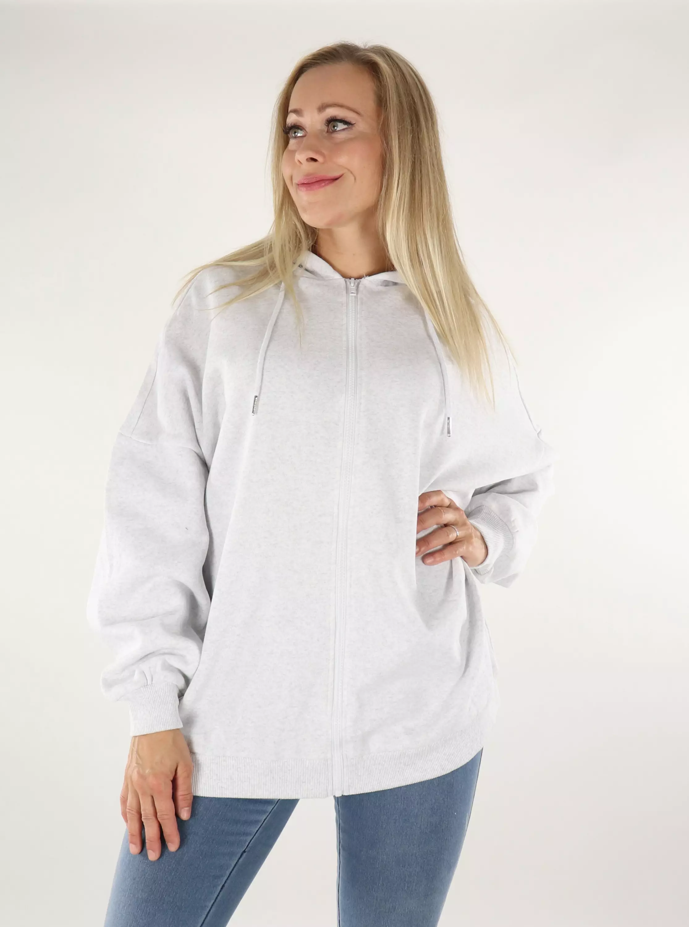 Hupullinen oversized-collegetakki vetoketjukiinnityksellä.