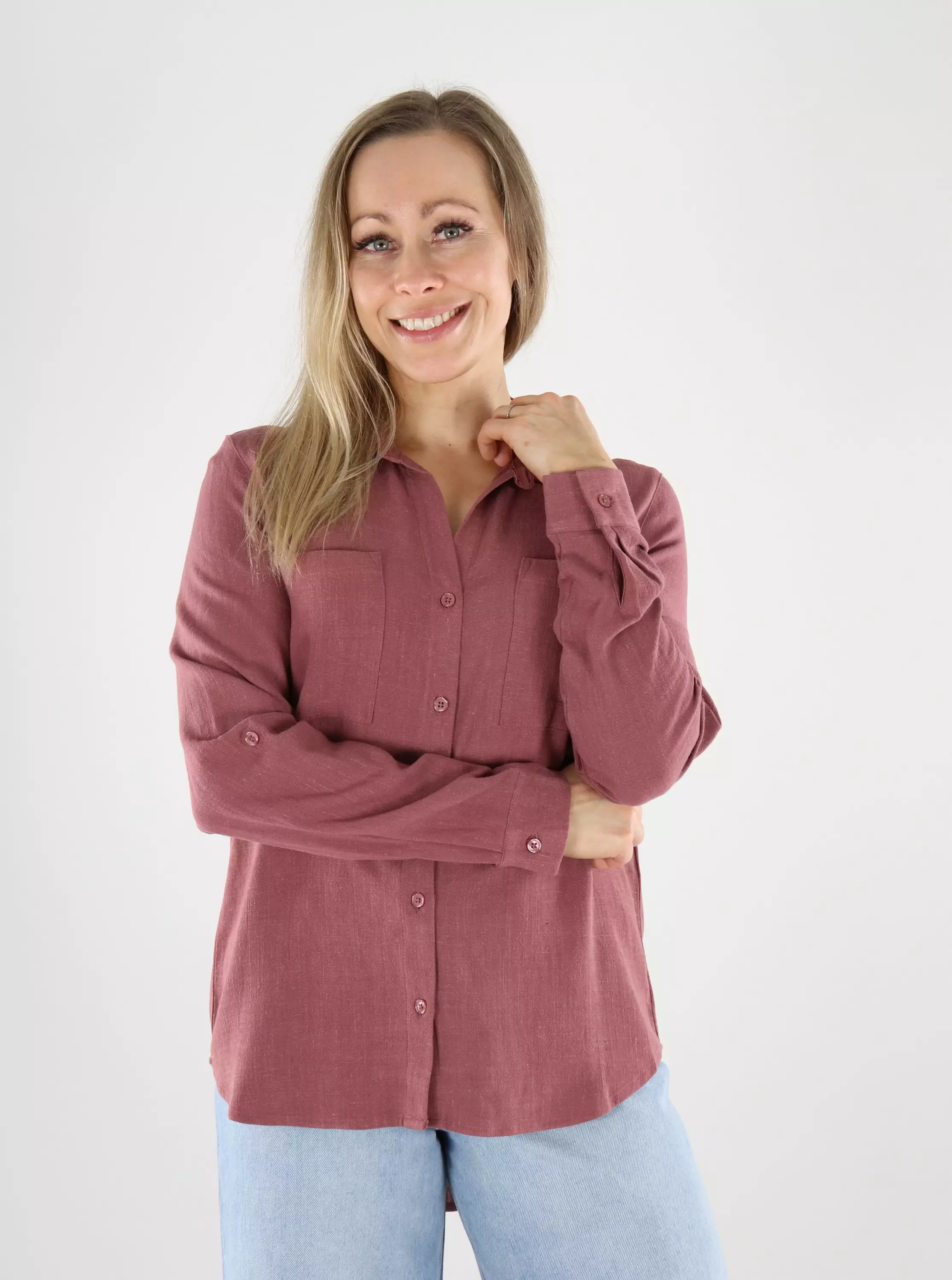 Rennon mallinen kauluspaita pehmeää pellavasekoitetta. Paidassa on pyöristetty, takaa pidempi helma.