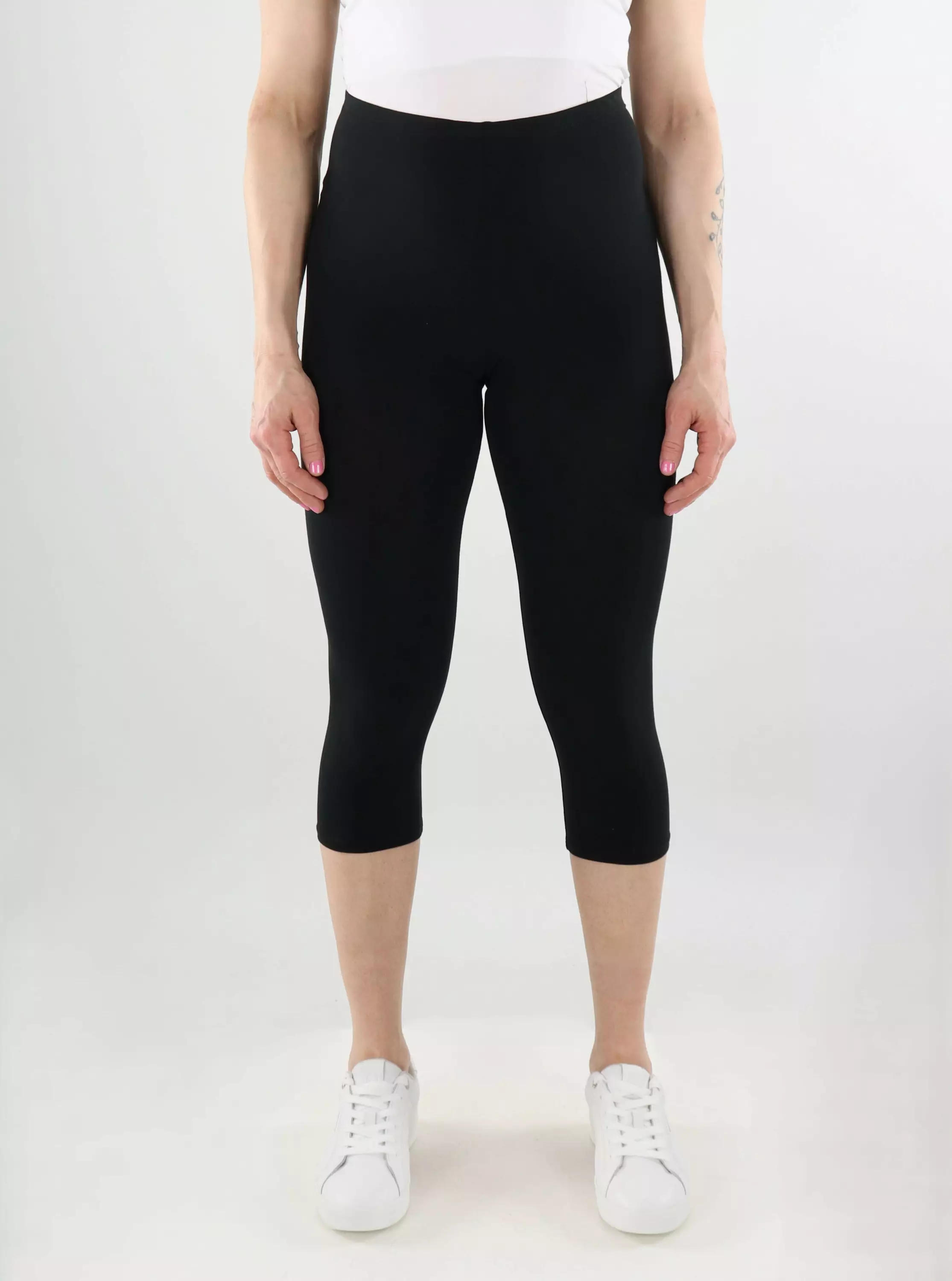 Erittäin joustavat capripituiset puuvillaleggingsit. Housujen hengittävä materiaali takaa mukavuuden koko päiväksi!