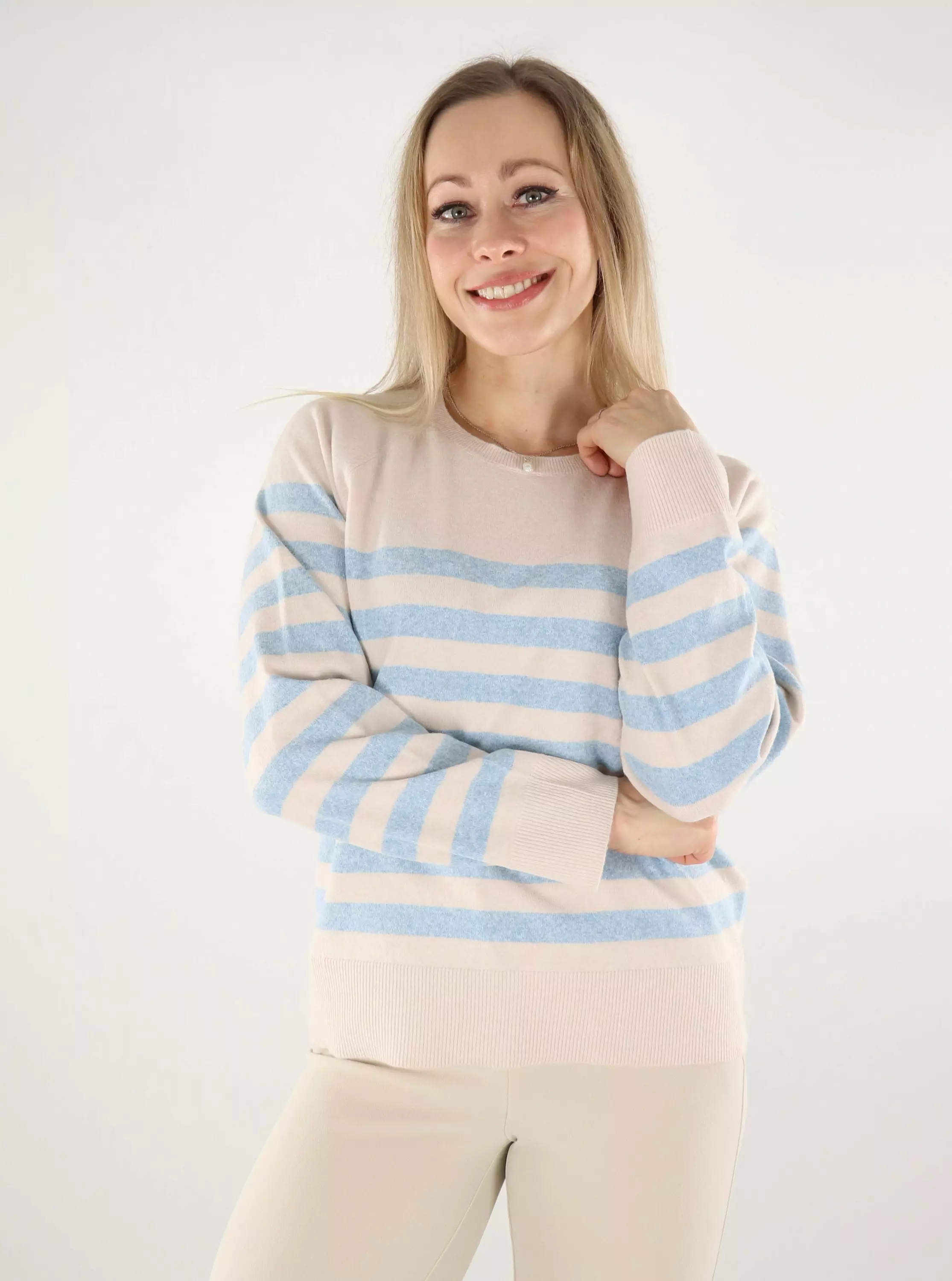 Trendikäs raidallinen neulepaita, joka on valmistettu pehmeästä ja kevyestä neuloksesta.