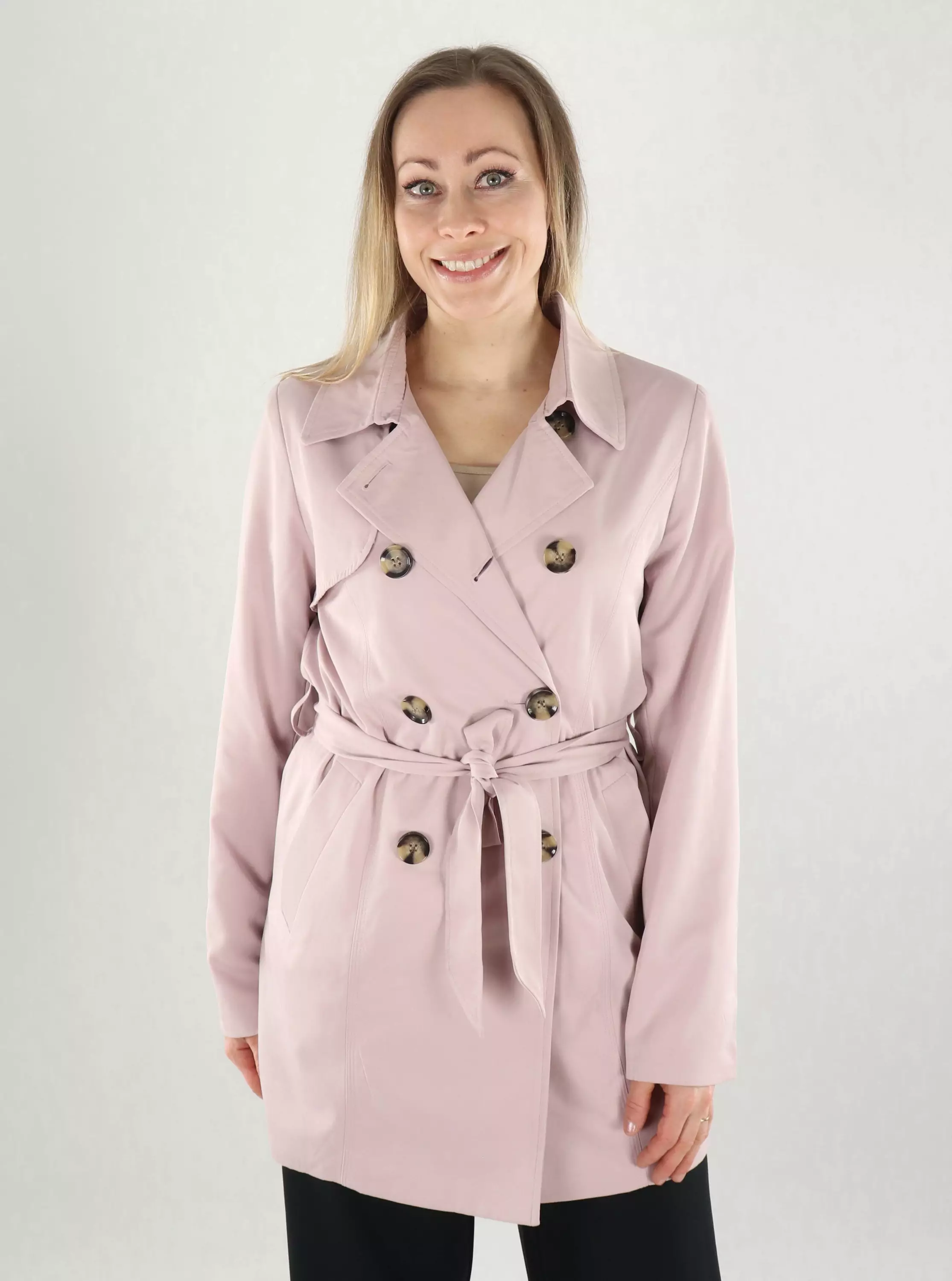 Naisellinen, vaaleanpunainen trenssitakki, joka viimeistelee asusi tyylikkäästi! Klassinen malli ja pehmeä materiaali tekevät siitä mukavan päällä ja helposti yhdistettävän jokaiseen asuun.