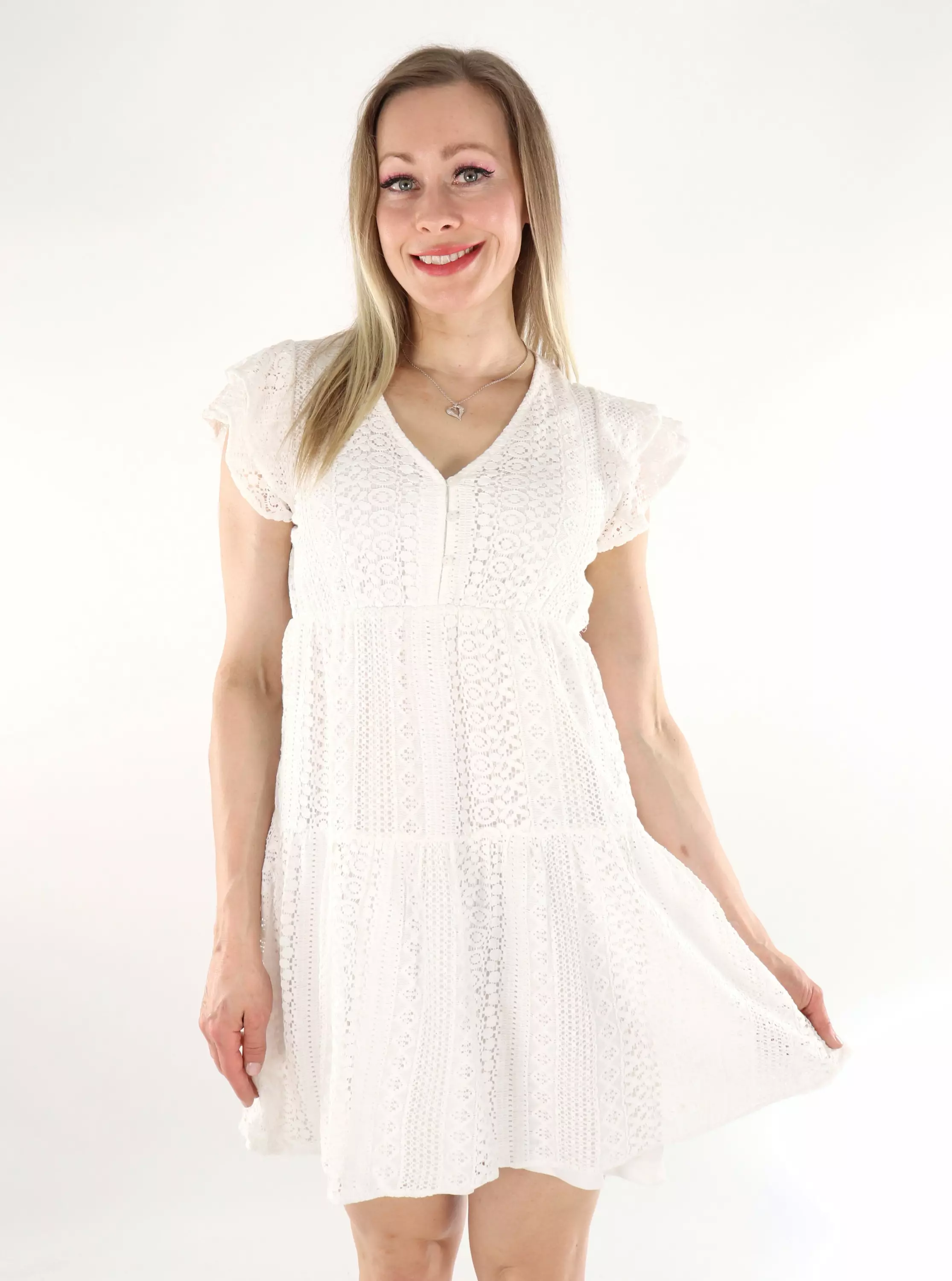 Onlyn kaunis A-linjainen pitsimekko on täydellinen yhdistelmä eleganssia ja mukavuutta! Romanttinen pitsikangas ja kaunis leikkaus tekevät mekosta monikäyttöisen – se sopii niin arkeen kuin juhlaankin.