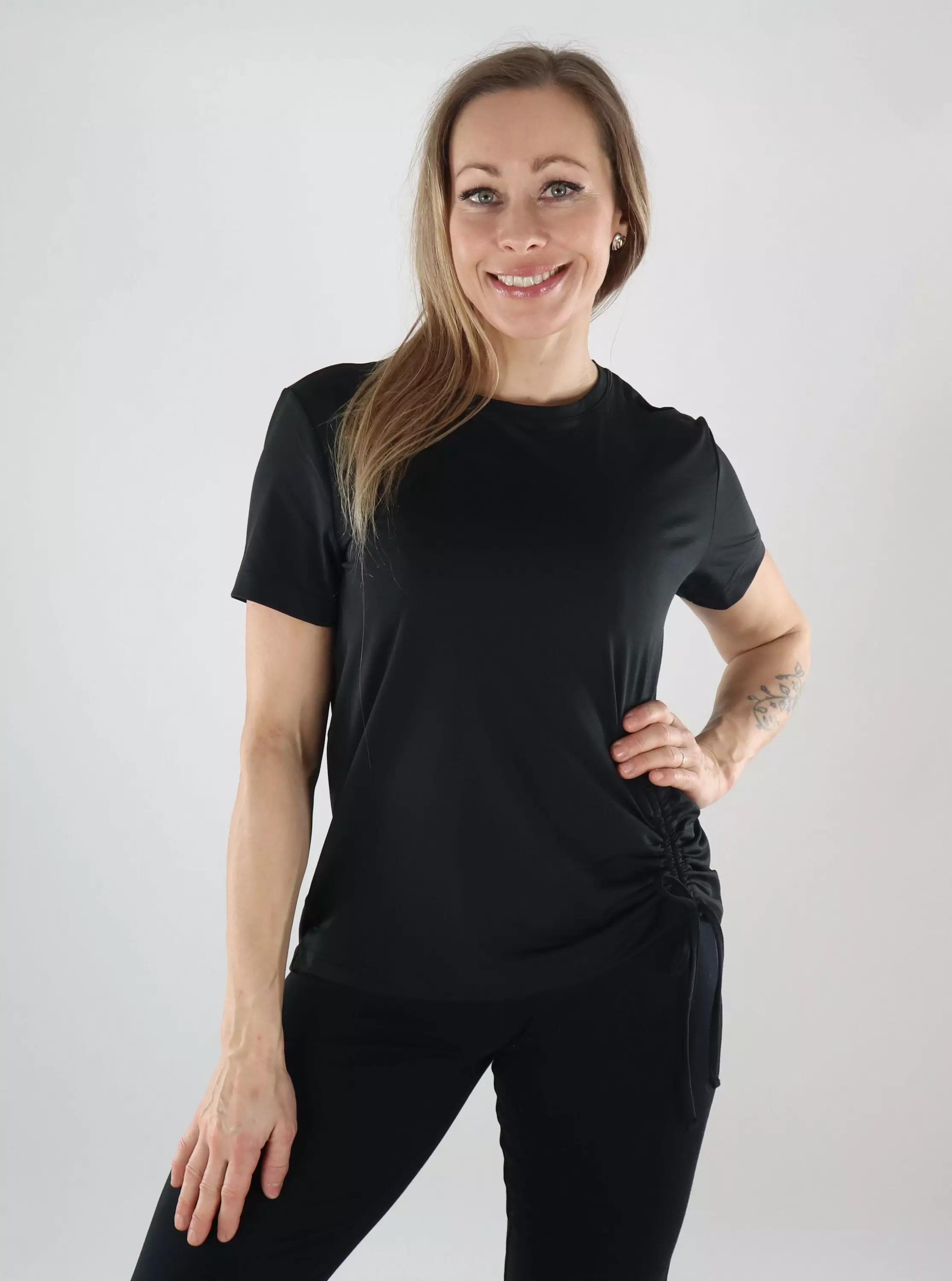 Trendikäs treenipaita, jossa rento malli ja edessä säädettävä kiristysnyöri. Kevyt ja hengittävä materiaali tekee siitä täydellisen niin salille kuin vapaa-aikaankin!