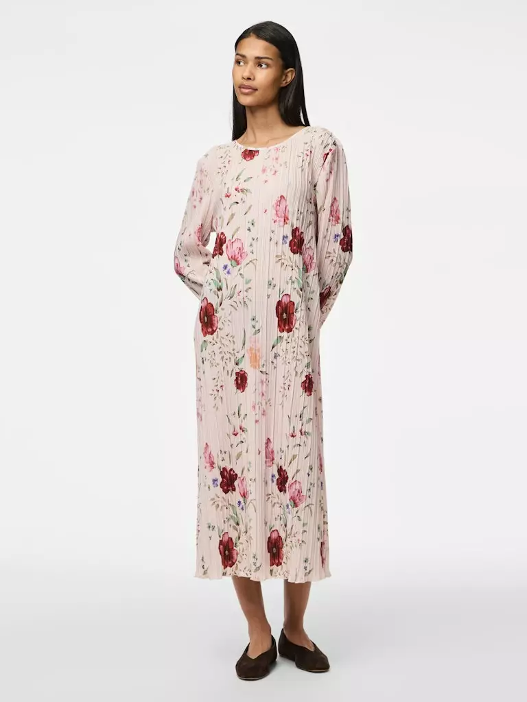 Tämä Piecesin kukkakuosinen mekko hurmaa pliseeratulla pinnallaan ja kauniisti levenevillä hihoillaan. Herkkä ja kaunis kuosi tekee siitä täydellisen valinnan jokaisiin juhliin!