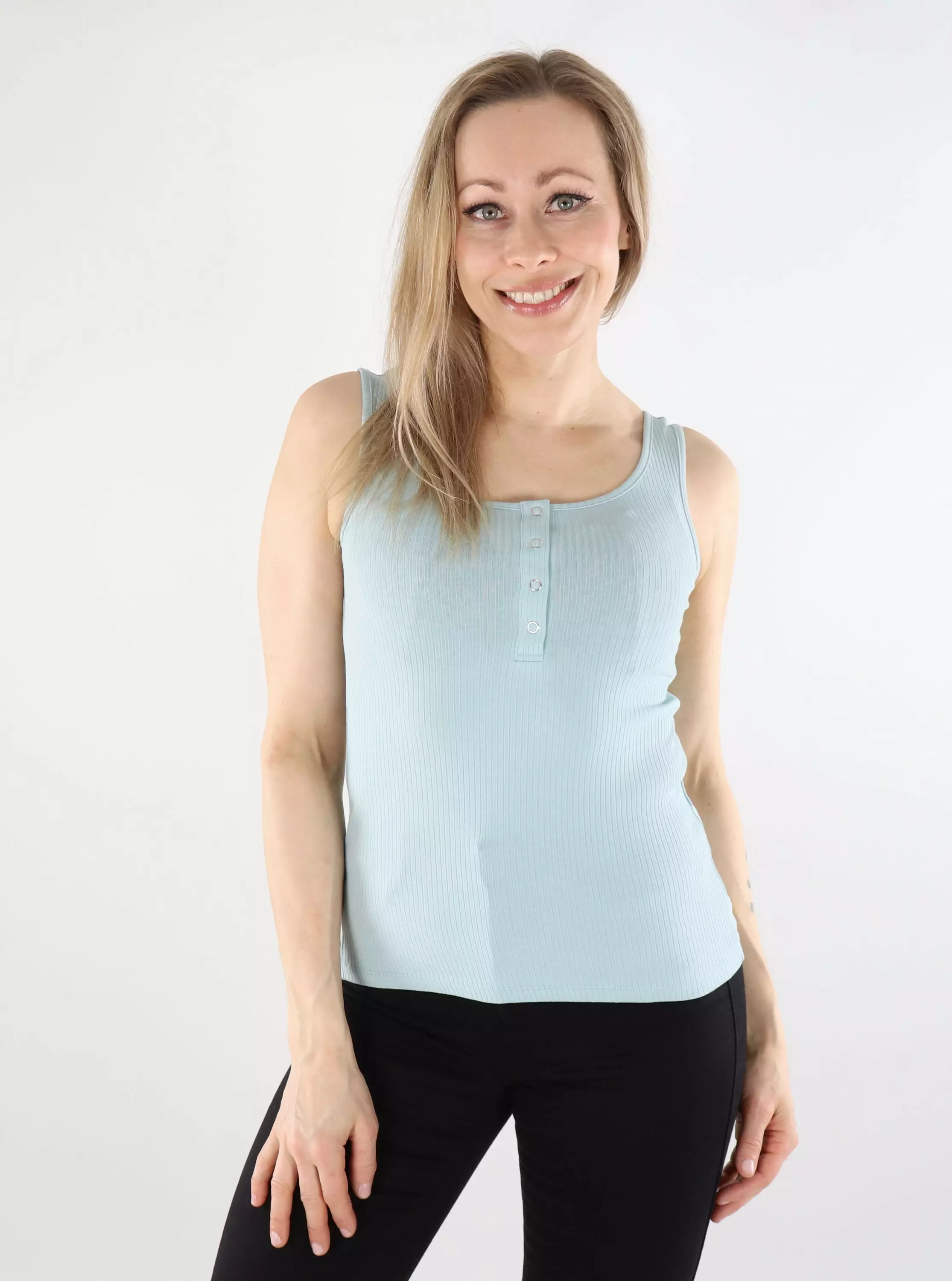 Pieces naisten ribattu toppi Kitte Tank vaaleansininen