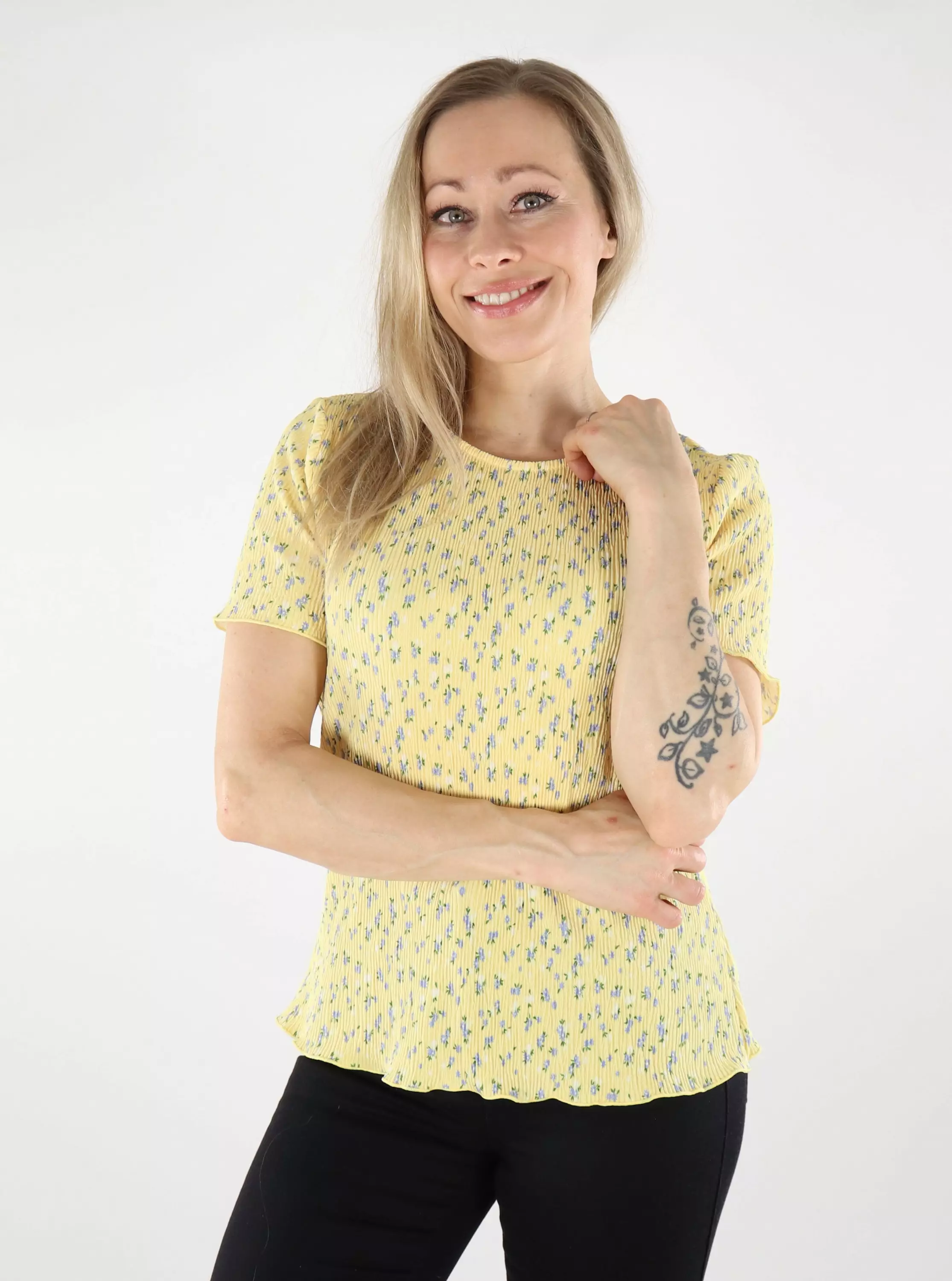 Pliseerattu kangas ja pirteän keltainen sävy tuovat tähän Piecesin t-paitaan raikasta ilmettä! Täydellinen valinta niin arkeen, lomalle kuin juhliin.
