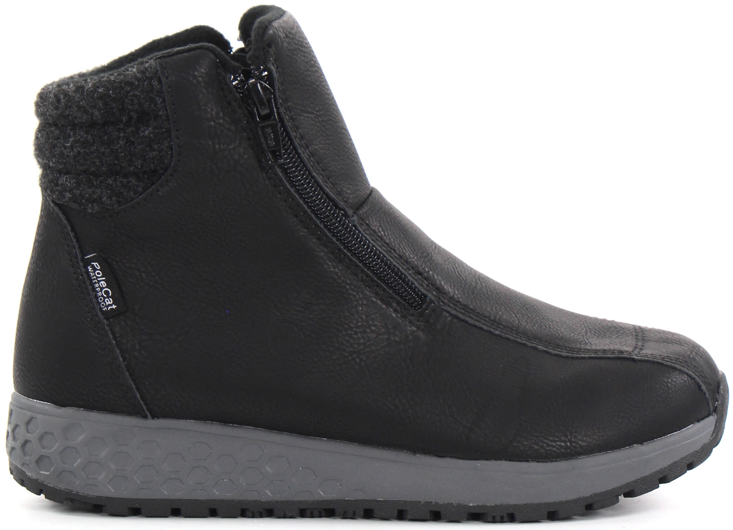 Keinomateriaaliset ja vedenpitävät nilkkurit kahdella vetoketjulla.