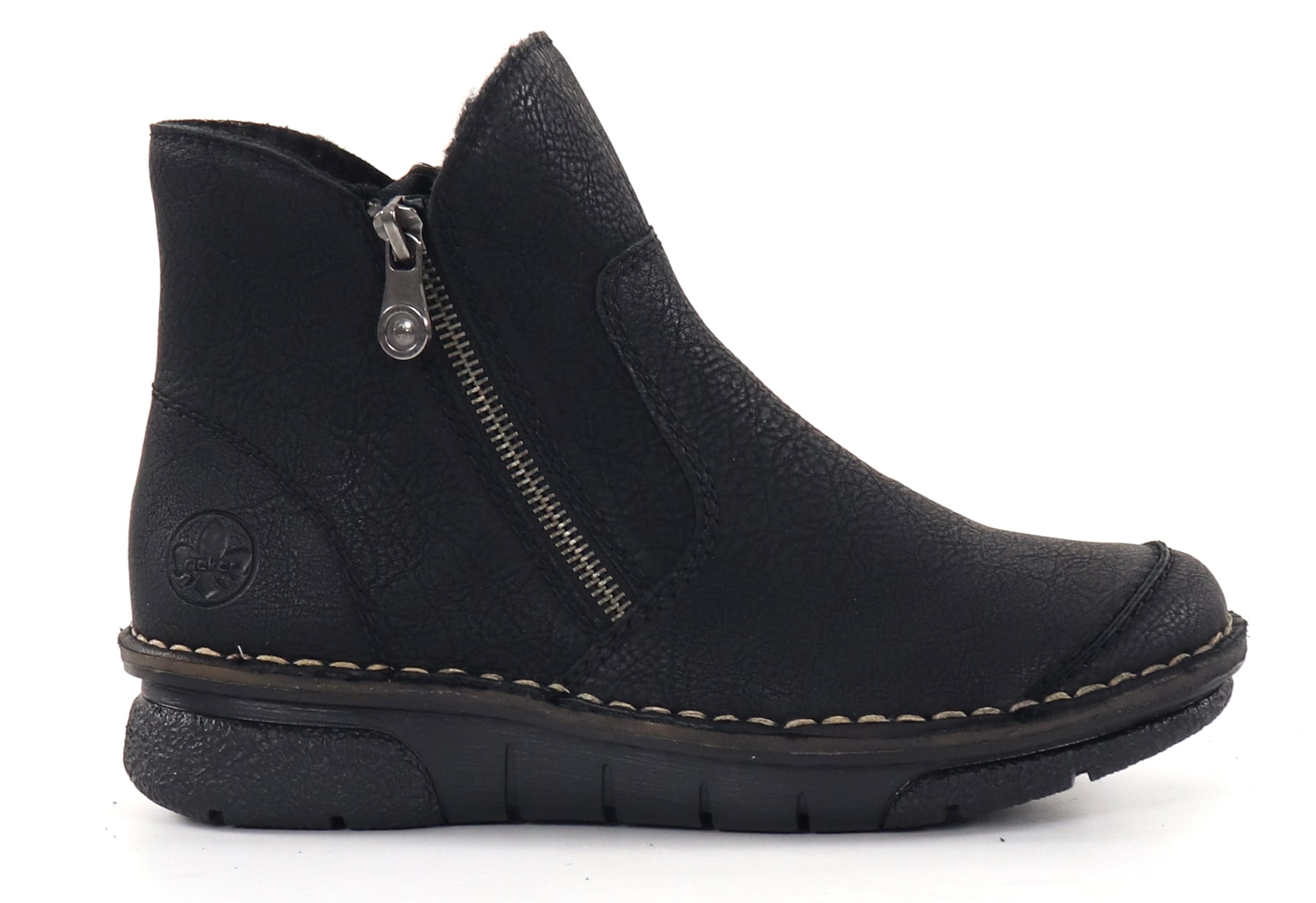 Rieker nilkkurit lämpimällä keinokarvavuorilla ja vetoketjukiinnityksellä. Kevyt, joustava ja iskuja vaimentava Antistress -pohja.