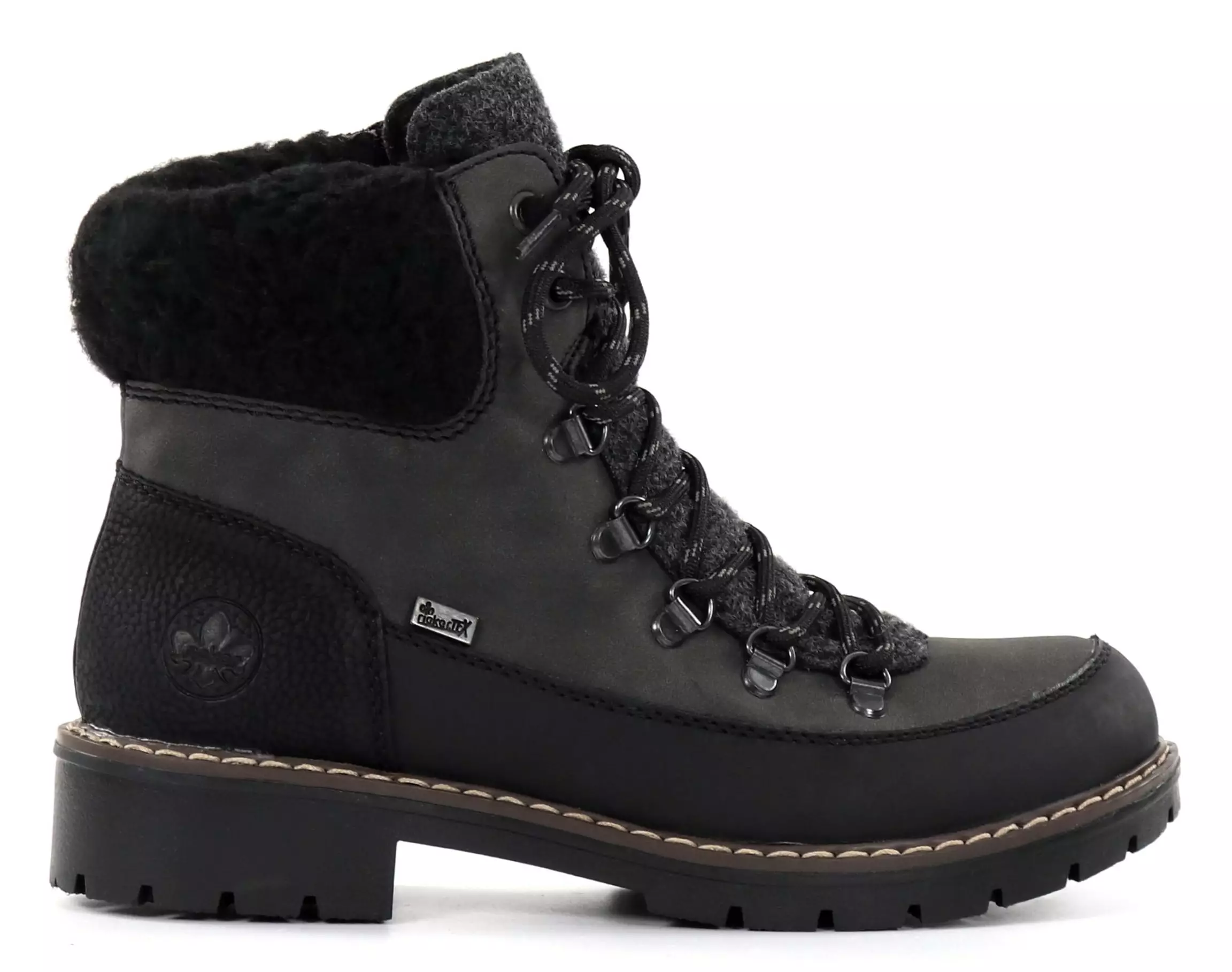 Lämpimät nilkkurit vettähylkivällä RiekerTex-ominaisuudella. Nauhoituksen avulla saat säädeltyä kengän omaan jalkaasi sopivaksi.