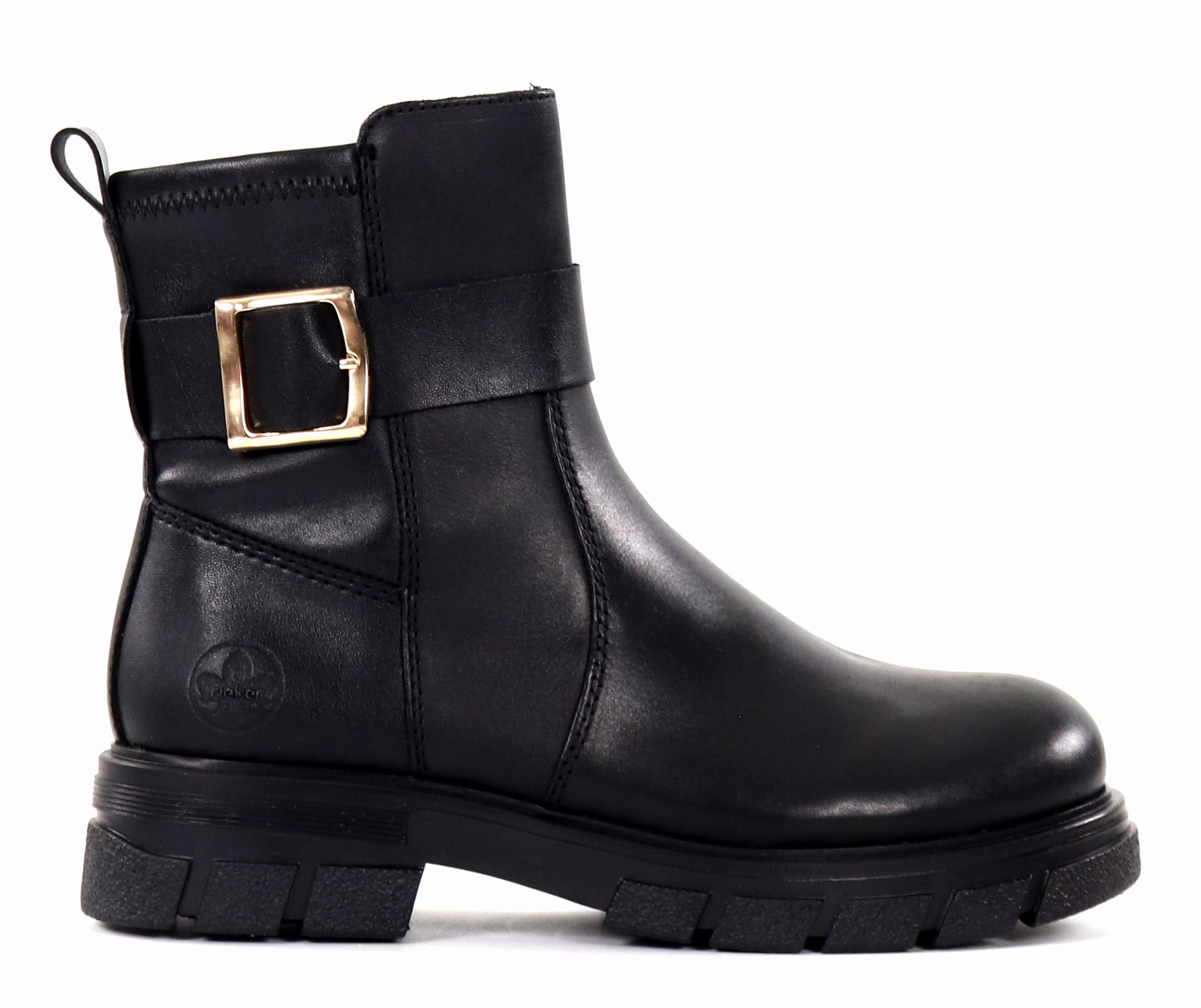 Rieker-nilkkurit aitoa nahkaa kultaisella koristesoljella ja lämpimällä huopapohjallisella.