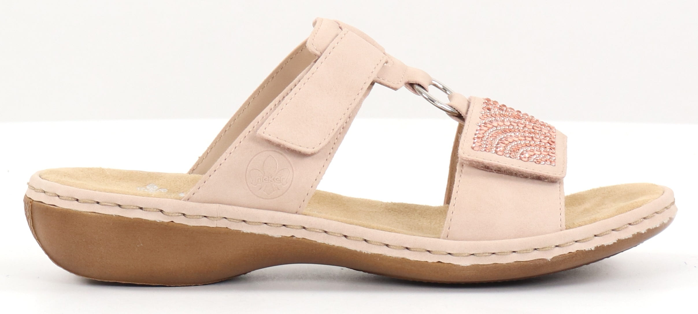 Keinonahkaiset pistokkaat, joissa koriste timantteja. Säädettävät remmit tarrakiinnityksellä.